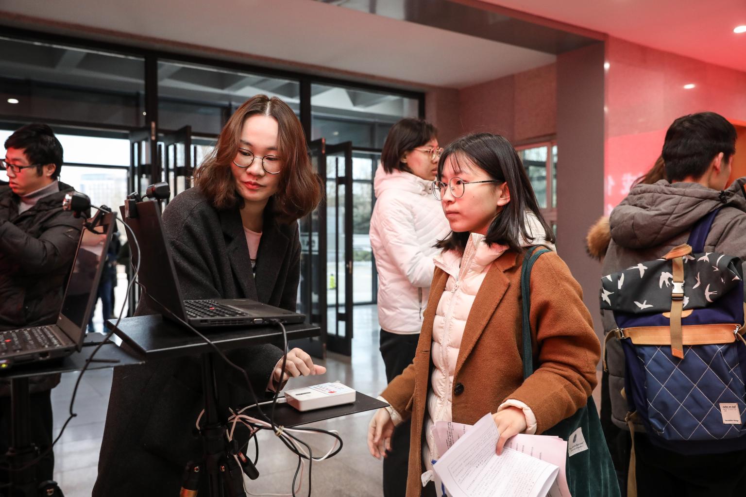 (我校考点实行人脸识别验证入场 李泽锋 摄)