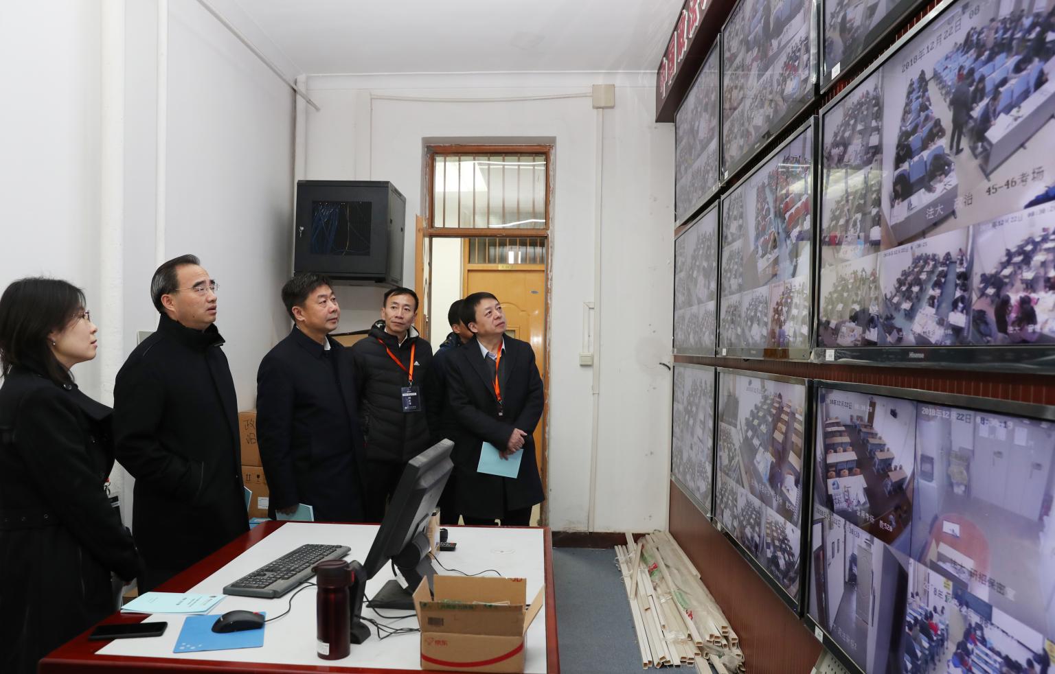 12月22日上午开考前,校党委书记胡明、校长黄进、党委副书记、纪委书记刚文哲、副校长马怀德、党委副书记、副校长常保国分别视察了学院路和昌平两个考区。他们认真询问了今年我校硕士研究生招生考试的报名情况和考点组织工作,慰问了考务工作人员,观看了人脸识别验证入场情况,并通过“远程电子巡查系统”对考试情况进行了巡查。他们对研究生院及各相关部门的组织工作表示了肯定,对人脸识别验证入场试点工作表示了赞许,同时,强调研究生招生考试考生来源广、社会影响力大,要求考务工作要严之又严、细之又细,扎实做好各项工作,实现平安研考。