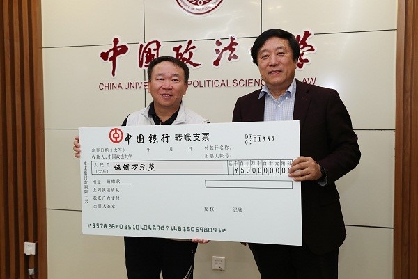 (冯世勇代表学校接受500万元捐赠)