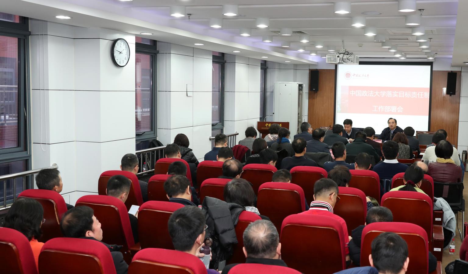 (记者 骆红维)为进一步深化学校管理体制改革,推动现代大学治理体系和治理能力建设,校党委实施了处级领导班子任期目标责任制,力图通过发挥考核的导向、激励和监督作用,真正把全校上下凝聚到“双一流”建设中来,从而写好世界一流法科强校建设的“奋进之笔”。12月29日,学校召开落实目标责任制工作部署会。全体校领导以及校部机关各部处负责人、各学院党政负责人参加会议,会议由党委副书记高浣月主持。
