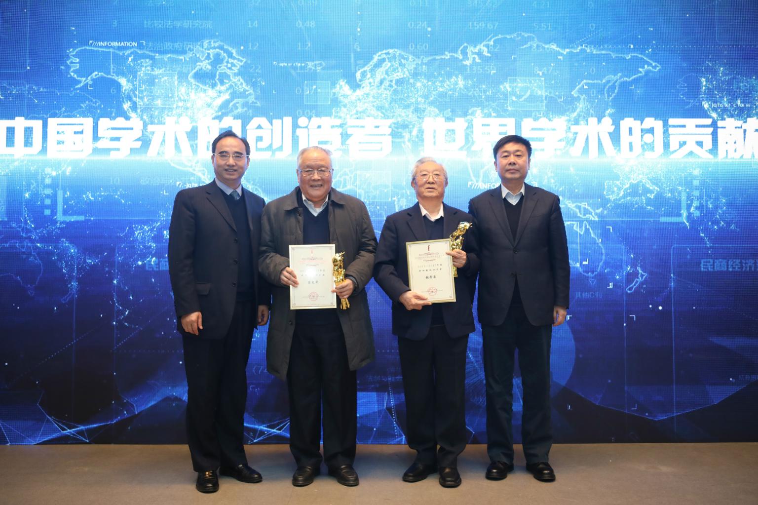 高浣月宣读获奖名单。各位领导共同颁发了年度奖科研贡献集体奖、特别奖核心论文奖、特别奖纵向项目奖、特别奖横向项目奖、年度奖权威论文奖、年度奖核心论文奖、年度青年奖和科研影响力大奖八项奖项,陈光中先生、张晋藩先生获科研影响力大奖。陈光中先生、张晋藩先生和李德顺先生作为获奖代表致获奖感言。
