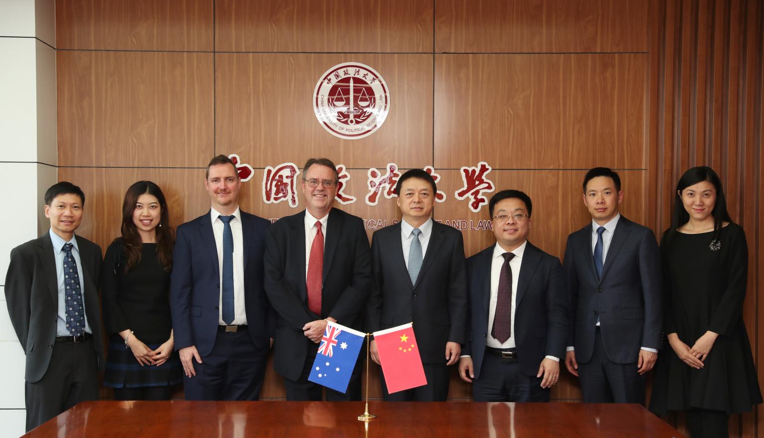 3月18日下午,副校长马怀德在学院路校区会见了澳大利亚昆士兰大学(University of Queensland)商学、经济及法律学院学术院长兼TC Beirne法律学院院长Patrick Parkinson、国际关系部主任Brendon Lutwyche,以及大中华区经理Michael Chen一行三人。