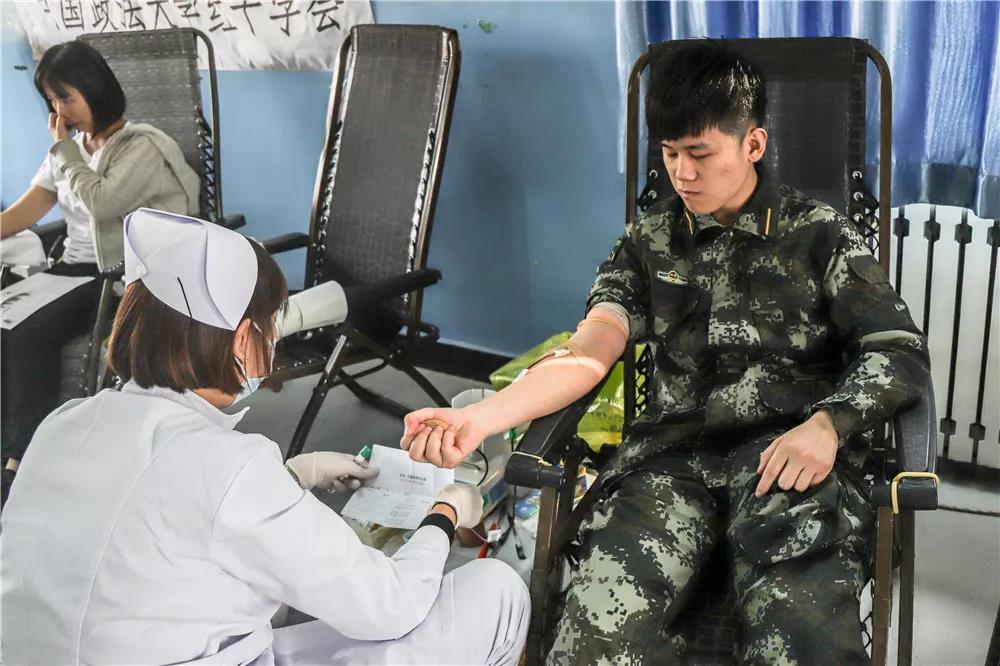 国防生牛昊来自刑事司法学院1501班,这次已经是他在大学参加的第六次献血了,他说:“看到自己的血液从身体中流出,我想象着能够为挽救他人的生命做一些力所能及的事,这是特别有价值和意义的。”