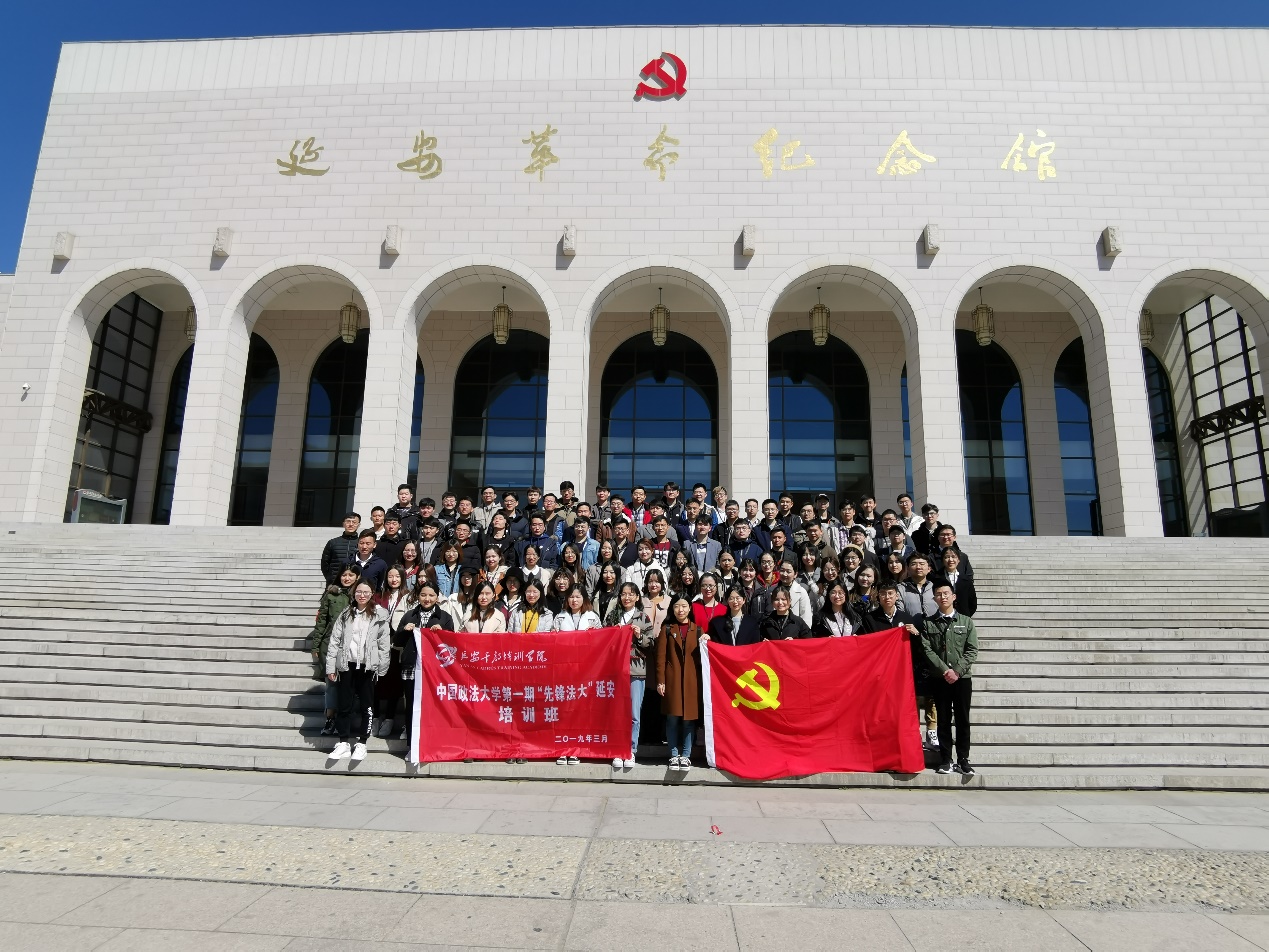 为认真学习宣传贯彻党的十九大精神和习近平新时代中国特色社会主义思想,全面贯彻落实习近平总书记考察法大重要讲话精神和学校第八次党代会精神,进一步提高学生党员党性修养,继承和弘扬红色革命传统,3月30日、31日,我校第一期“先锋法大”优秀学生党员培训班在革命圣地延安顺利举行,通过理论学习、现场教学、团队建设、集中汇报等多种形式,对来自全校近100名学生党员进行了培训。