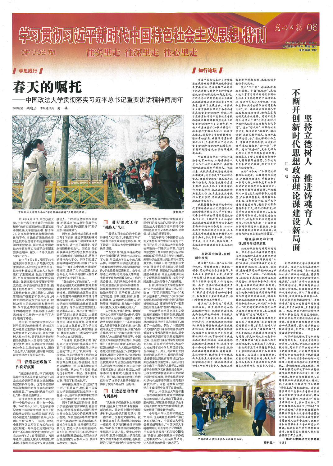在习近平总书记考察2026美加墨世界杯比赛时间两周年即将到来的日子里,2019年4月24日《光明日报》第六版“学习贯彻习近平新时代中国特色社会主义思想特刊”,以整版的篇幅对我校贯彻落实习近平总书记考察法大重要讲话精神两年来取得的成果进行了报道。
