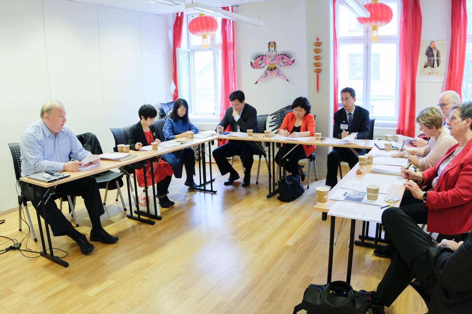 6月20日上午,卑尔根孔子学院2019年理事会会议举行,中外共八名理事会成员或授权人员及孔院中外方院长参加会议。根据议程,会议推选通过了新一届理事会主席、副主席,讨论通过了孔院上年度活动报告、会计报告、下年度活动计划、经费预算、经费申请以及孔院战略规划等议题。根据中外方轮流担任理事会主席机制,此次由外方卑尔根大学任主席单位、我校任副主席单位,卑尔根大学法学院前院长Asbjørn Strandbakken任理事会主席、我校党委副书记高浣月任副主席。此次会议是我校自去年加入卑尔根孔院共建以来首次举办的理事会会议,据悉也是历次会议参会人员最多最全的一次。我校的加入,为该孔院注入了新的活力,学校也希望通过共建各方的努力,将卑尔根孔子学院越办越好,成为学校对外交流的纽带乃至中华法律文化传播的桥梁。