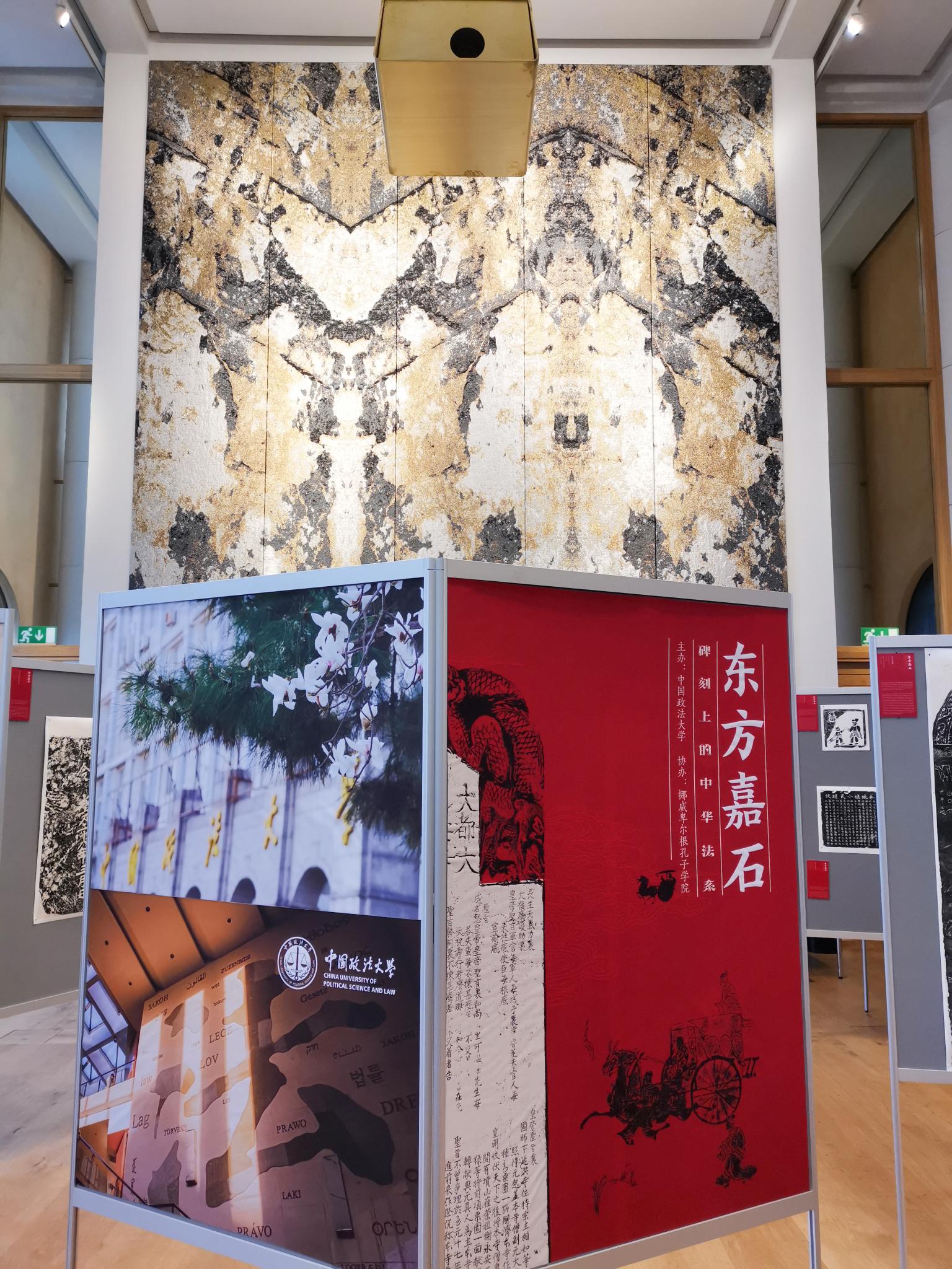 据悉,该展览名为“东方嘉石——碑刻上的中华法系”,44面展板围绕着“儒学与法律”两个鲜明的主题,通过碑石拓片作为载体,向广大海外观展者呈现了中华法系的独特内涵与精神。