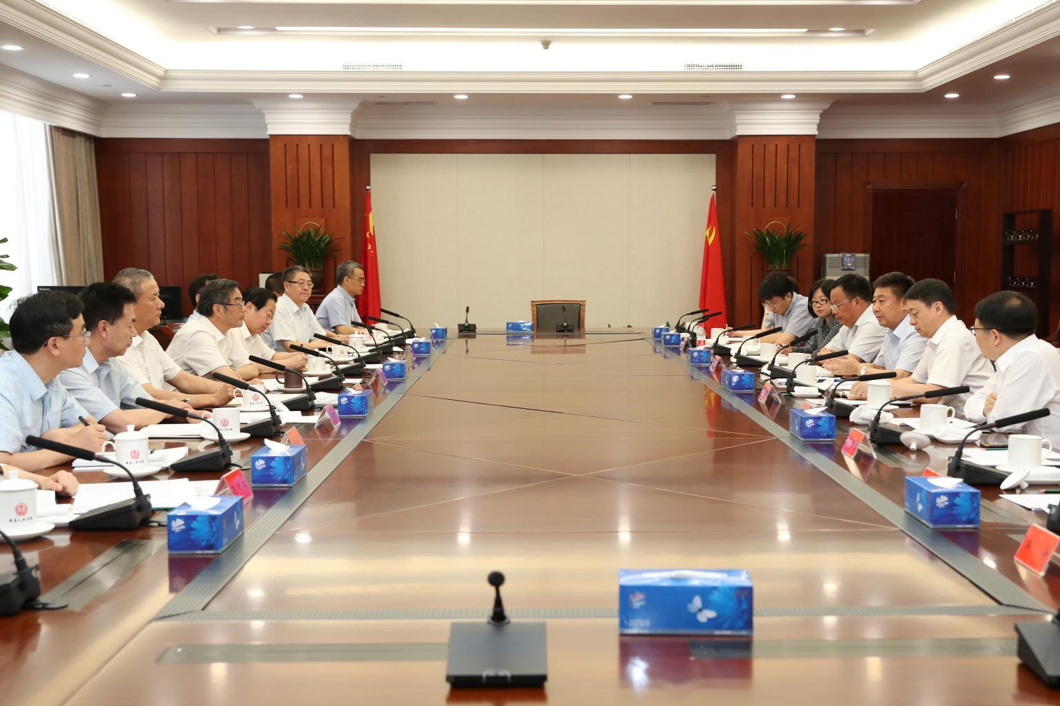 7月15日下午,党委书记胡明、校长马怀德一行赴最高人民法院,拜访最高人民法院院长周强,就院校共建合作进行洽商。最高人民法院党组成员、政治部主任马世忠,副部级干部胡云腾,办公厅主任于厚森、副主任付向波、政治部组织人事部部长李家军、宣教部部长连丹波、研究室主任姜启波、信息技术服务中心主任许建峰、法官学院副院长蒋惠岭;我校副校长时建中,党委副书记、副校长常保国以及相关部处负责人参加座谈。