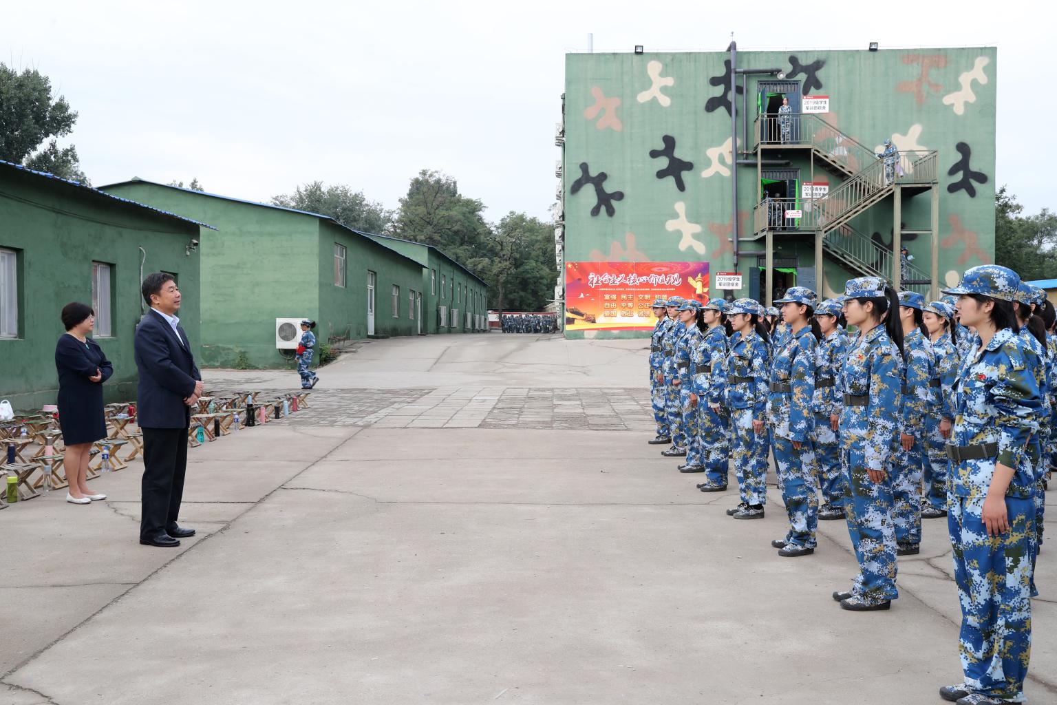 (通讯员 王昕颜)9月12日上午,我校党委书记胡明,副校长李秀云一行到北京昌平盛华人才培训中心,探望慰问军训基地的法大师生并参加军训团“青春告白祖国——家乡变化之我见”主题班会。校学生工作部、校工会、后勤保障处等部门负责人陪同慰问。