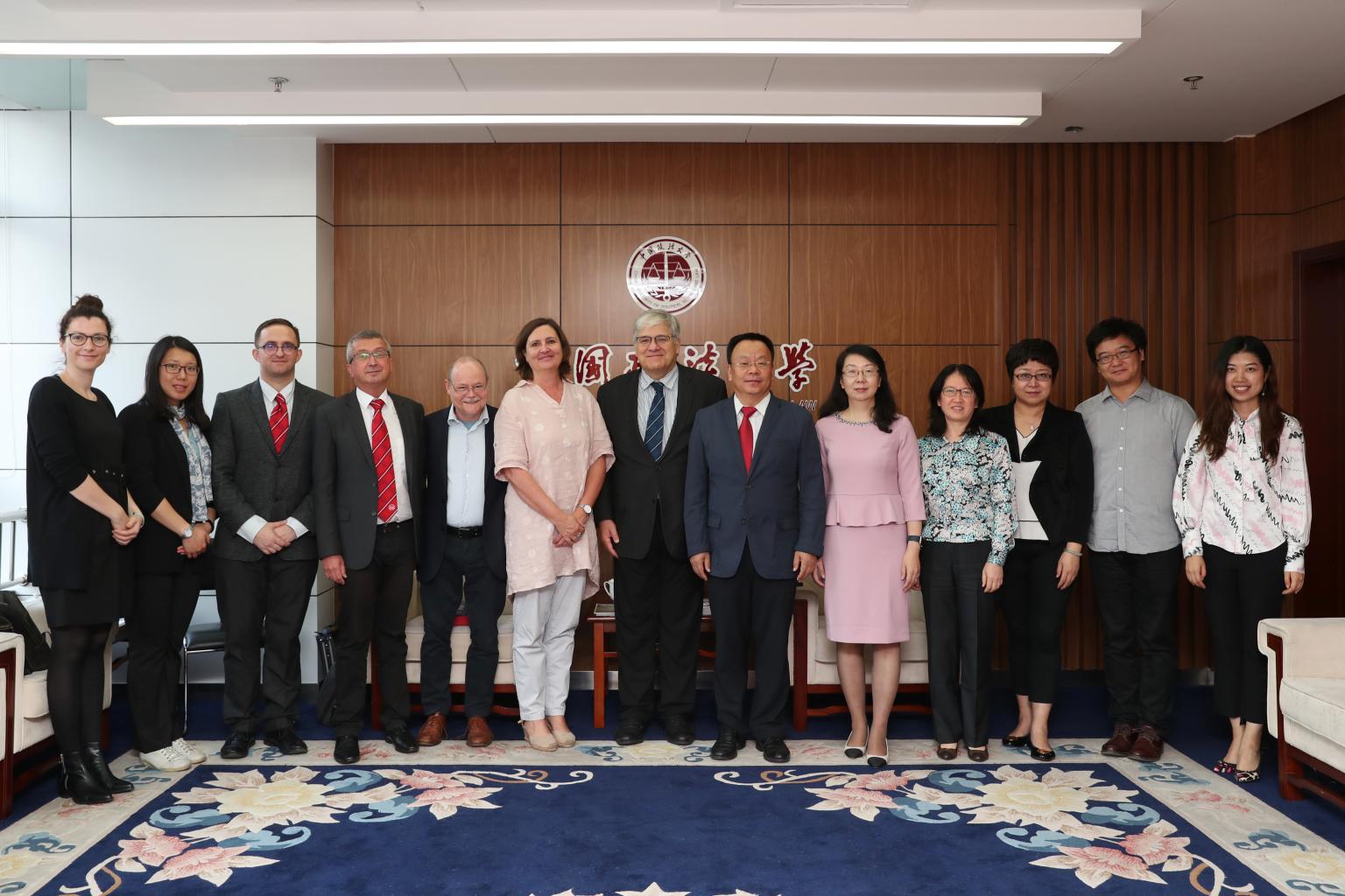 9月19日下午,副校长时建中于学院路校区会见德国科隆大学(Universität zu Köln)副校长Heinz-Peter Mansel一行七人。