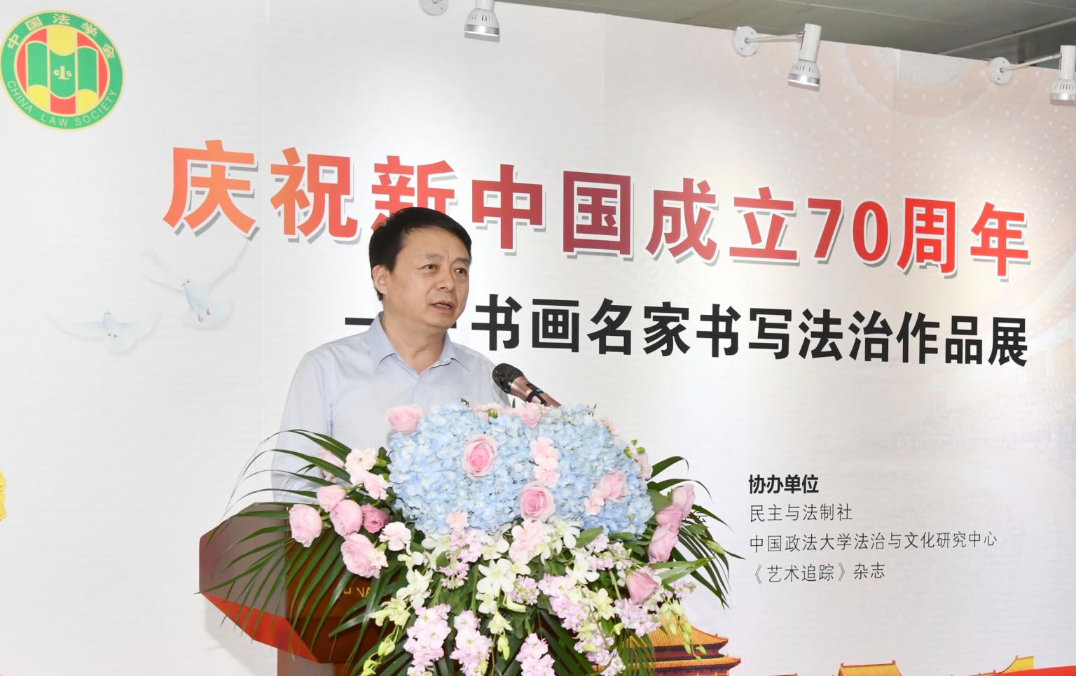 张苏军在致辞中表示,今年是新中国成立70周年。70年来,在中国共产党坚强领导下,我们国家发生了日新月异的变化,法治建设也取得了历史性成就、发生了历史性变革。习近平总书记在党的十九大报告中指出,要深化依法治国的实践,加大全民普法的力度,建设社会主义法治文化,提高全民族法治素养和道德素质。“七五”普法规划中也有提出,要充分发挥法治文化的引领、熏陶作用,繁荣法治文化作品的创作、推广,培育法治文化精神。要利用重大纪念日、民族传统节日等契机开展法治文化活动,以满足人民群众日益增长的法治文化需求。在新中国成立70周年之际,举办法治书画展,就是贯彻落实习近平总书记的重要讲话精神和实施“七五普法”规划的一项重要举措,也是展示法治中国建设70年光辉历程和伟大成就的生动体现,为新中国成立70周年营造良好的法治氛围。期待艺术家们能够创造出更多更好的法治文化精品,为推动法治文化的大发展、大繁荣,建设社会主义文化强国,作出新的更大贡献。