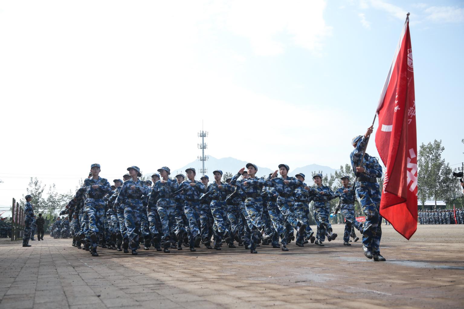 在国旗护卫队严整有力的步伐中,分列式表演开始,各连方阵喊出铿锵有力的口号,在激昂的军歌中为14天军训生活交上一份令人满意的答卷。