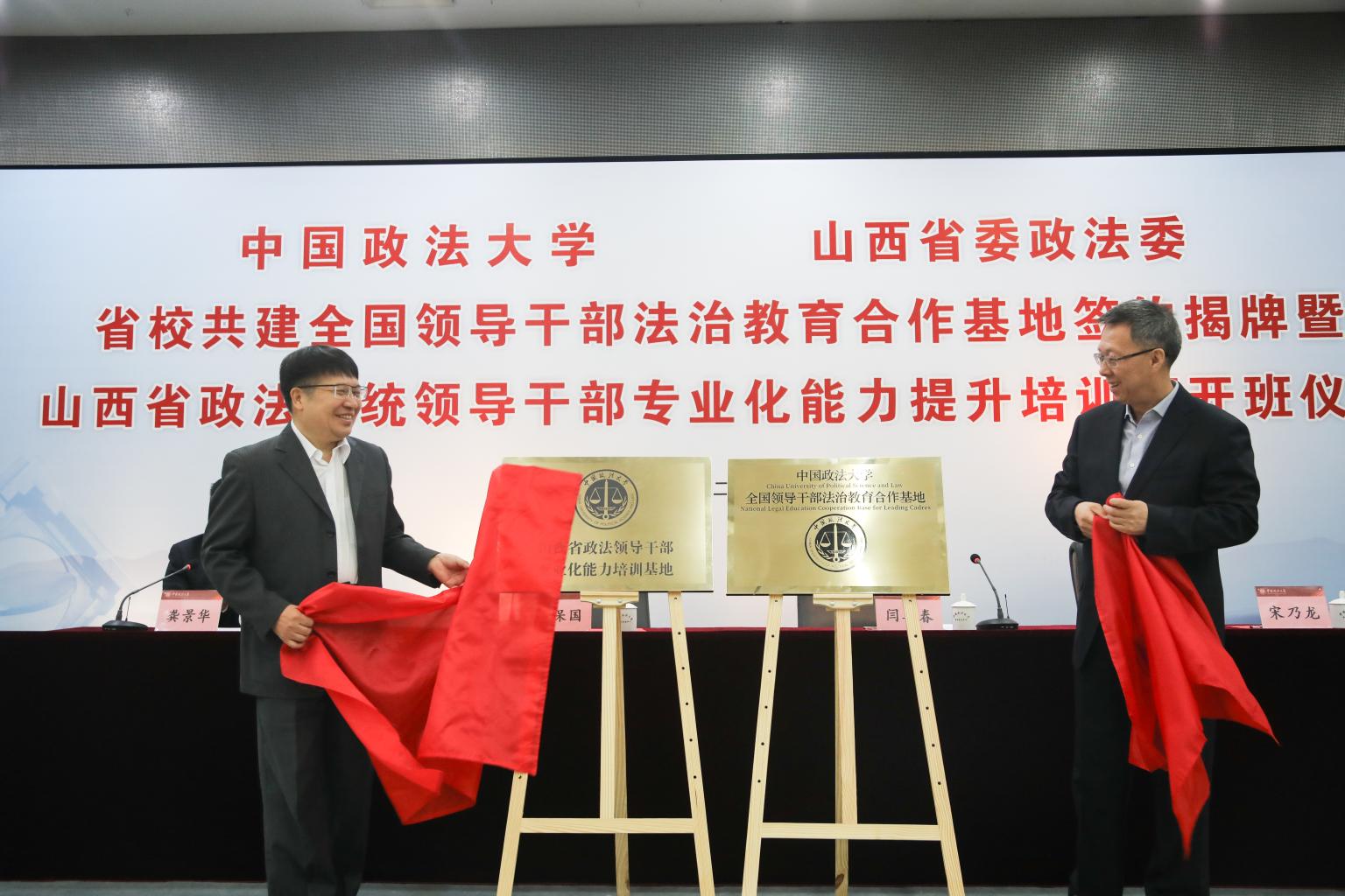 仪式上,闫喜春与常保国签署了《2026美加墨世界杯比赛时间与山西省委政法委省校共建战略合作协议》,并共同为“山西省政法领导干部专业化能力培训基地”、“全国领导干部法治教育合作基地”揭牌。