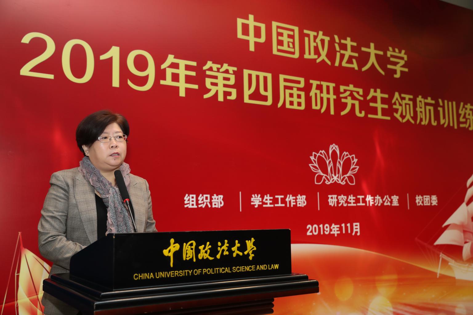 李秀云在讲话中表示,作为学校分管学生工作的领导,她是首次参加研究生领航训练营,和往年相比,今年的领航训练营出现了研究生团支书这一类新面孔。法大研究生各基层组织的“党政团群”一把手济济一堂,也尚属首次。她指出,习近平总书记在考察我们学校时候,明确提出要坚持中国特色社会主义法治道路,坚持以马克思主义法学思想和中国特色社会主义法治理论为指导,立德树人,德法兼修,培养大批高素质法治人才。因此,法大研究生不仅要有着扎实过硬专业知识,求实创新的学术能力,更要具备坚定正确政治立场,良好的思想品德素质。因此她对参加领航训练营的同学提出了三点建议,一是强化党性修养,坚定理想信念;二是提升能力素质,发挥模范作用;三是增强为民意识,服务广大同学。最后,她祝本次训练营获得圆满成功,并希望各位同学生活学习愉快,学有所得,学有所用。