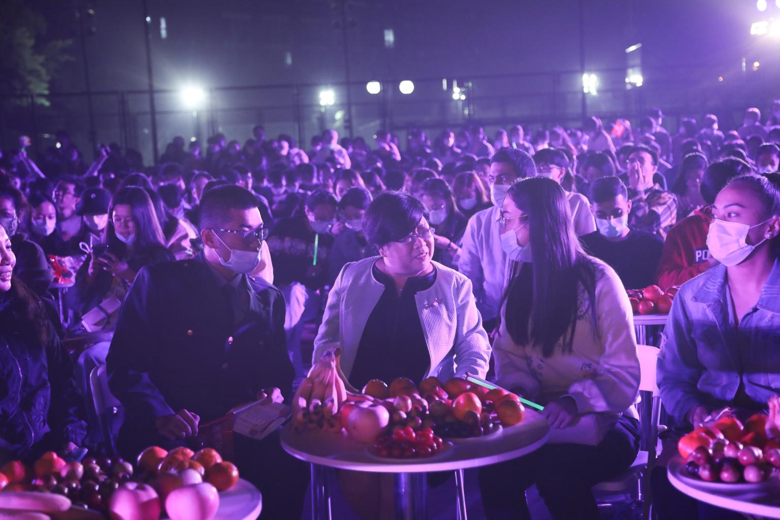 伴随着联欢会进行,教师合唱《十五的月亮》、民乐合奏《茉莉花》、歌曲《你学起来真好看》、师生合奏《大鱼》、街舞轮滑表演《Forever young》、乐队民谣演唱《为你唱首歌》、集体舞《吉祥如意哈达》七个精彩节目依次表演,逐渐将联欢会的气氛推向高潮。来自不同学院的师生,用学院独特的方式齐祝节日快乐,传递出对祖国的真挚情感。联欢会接近尾声,参与观看的全体师生一同起立,挥舞着手中的校旗和荧光棒,一起合唱《我和我的祖国》,共同祝福祖国母亲繁荣昌盛。