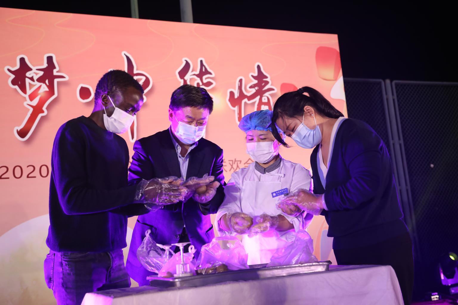 来自不同省份和地区的少数民族同学,身着各民族传统服饰,用一首集体合唱《今天是你的生日,祖国》拉开了联欢会的序幕;热情洋溢的预科班同学带来舞蹈《花之情》,点燃了联欢会的现场;吉他弹唱《明月几时有》将传统与现代相融合,声声妙乐传达着属于中秋佳节的绵绵情意;来自昌平校区一食堂的糕点师为现场观众细致地介绍月饼的制作方法,并带领三组师生体验月饼制作,温馨有趣的互动为联欢会增添了别样色彩。