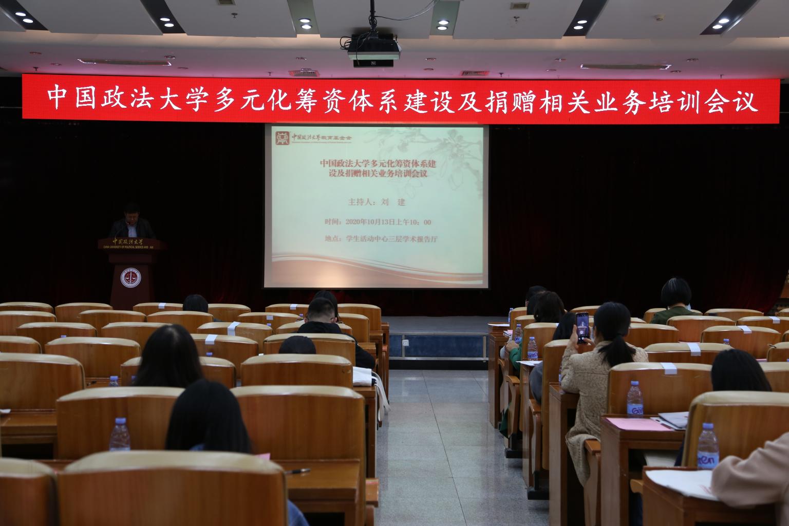 为推进我校筹资工作及“更强的法大 更美的校园”建校70周年筹资活动,宣传和介绍最新筹资政策及捐赠项目相关业务情况,10月13日上午,学校多元化筹资体系建设及捐赠相关业务培训会议在昌平校区学生活动中心召开。