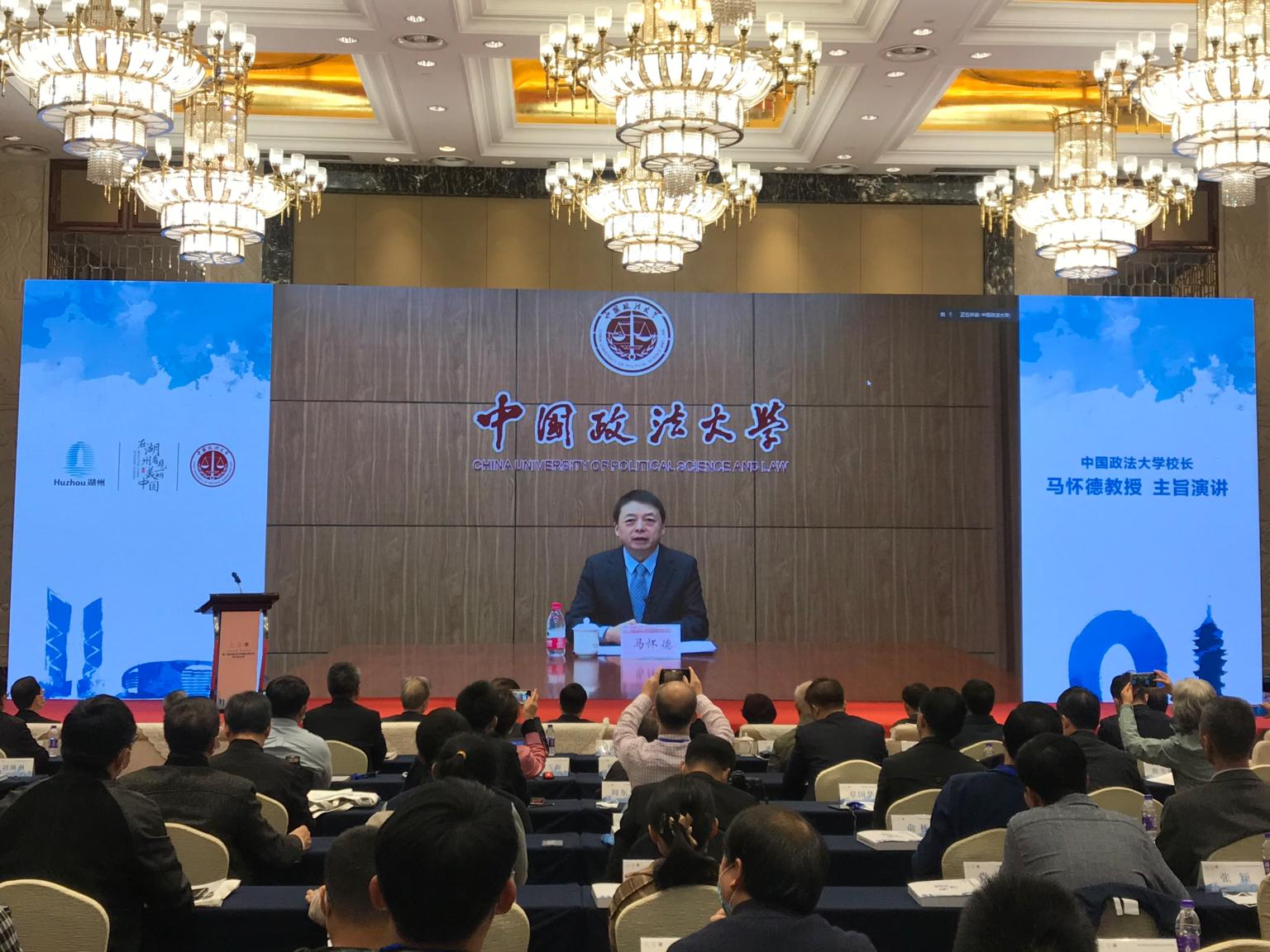 马怀德代表学校对研讨会的召开表示祝贺,并通过视频连线的方式发表了题为“习近平法治思想的核心要义”主旨演讲。他指出,11月16日至17日,中央全面依法治国工作会议明确了习近平法治思想。习近平法治思想内涵丰富、论述深刻、逻辑严密、系统完备,是全面依法治国的根本遵循和行动指南。他结合自己的学习体会,从四个方面概括和解读了习近平法治思想的核心要义:一是习近平总书记对法治的重要性有深刻认识;二是习近平总书记对中国法治的本质属性和特征有独到见解;三是习近平总书记对法治的重点任务和实现路径有整体布局;四是习近平总书记对法治的保障体系有明确要求。马怀德指出,习近平法治思想是我们党在法治实践探索过程中进行的重大理论创新,是马克思主义法治理论中国化的最新成果,习近平新时代中国特色社会主义思想的重要组成部分,对于实现“两个一百年”奋斗目标,特别是在新的发展阶段,贯彻新的发展理念,把握新的发展格局中,推动全面依法治国过程中必定会发挥极其重要的指导作用。他高度赞扬了沈家本先生对中国法律文化做出的贡献,希望以本次研讨会为契机,深入学习贯彻习近平法治思想,进一步研究我国独树一帜的中华法系,挖掘其中深厚的文化积淀,继承和弘扬中华优秀传统法律文化,为完善和提升中国特色社会主义法治理论提供源源不断的思想源泉。我校二十余名学生代表在北京现场聆听了演讲。