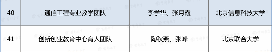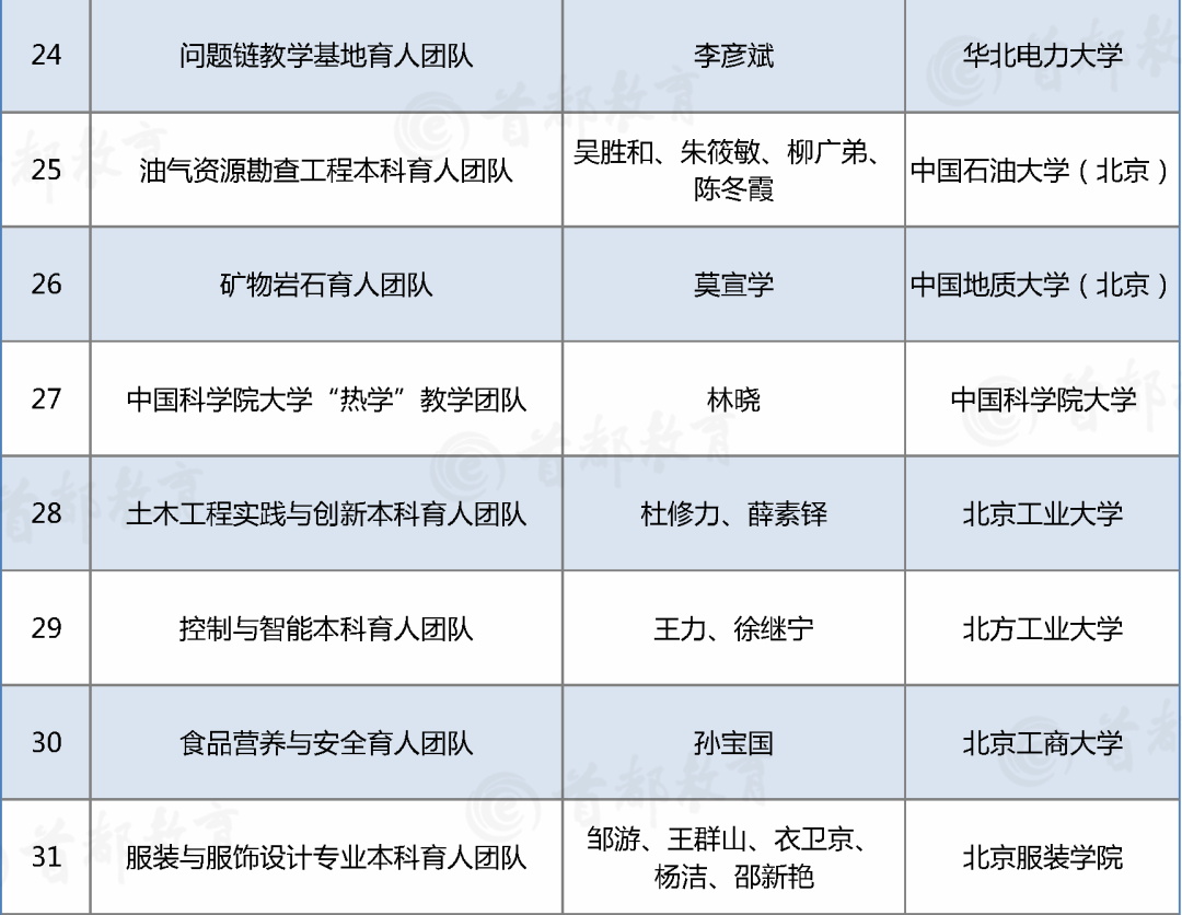 据悉,为落实立德树人根本任务,巩固人才培养中心地位,深化教育教学改革,提升教师团队教学能力和管理能力,北京市教育委员会于今年5月开展“北京高校优秀本科育人团队”和“北京高校优秀本科教学管理人员”评选工作,活动围绕“育人效果”和“团队结构”两个标准进行评选。今年共有41支团队入选“北京高校优秀本科育人团队”。