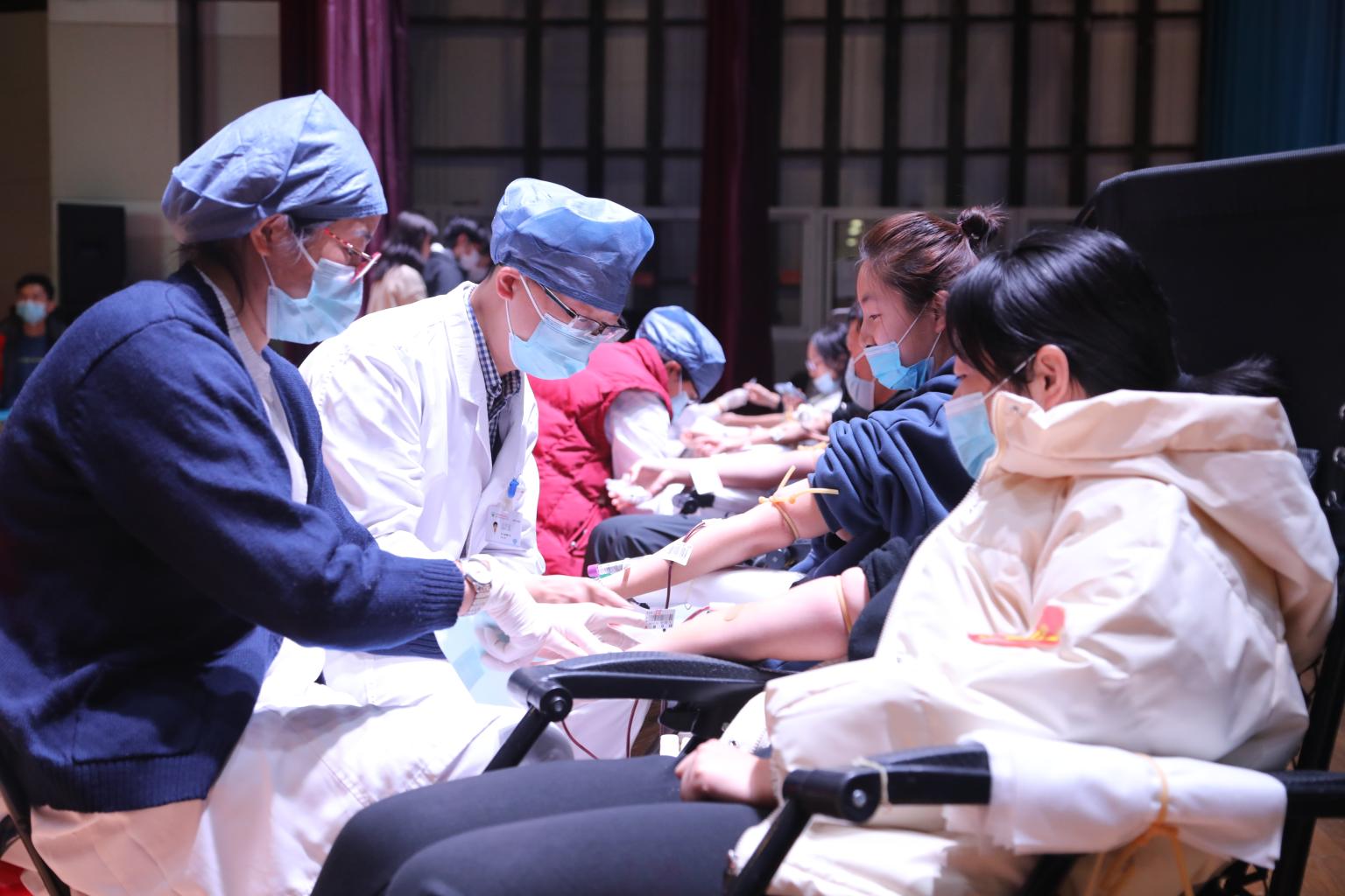 为保障献血同学的安全,校医院提供了完备的医疗保障。医务人员不停地在各个区域巡视,耐心安抚献血前紧张的同学,为同学们解答疑问,不断叮嘱同学采集血样后多饮水、吃早餐,指导同学献血后采用正确压迫方法。遇到献血后出现头晕等不适的学生,立即给予现场救治。让前来献血的同学感受到了温暖与关怀,解除了同学的后顾之忧。