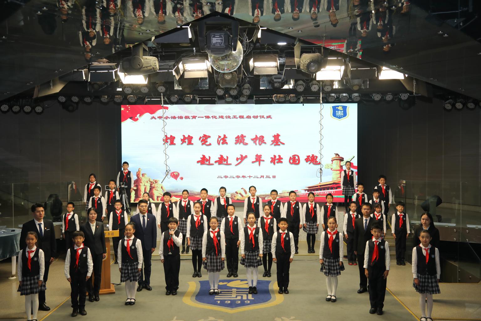 聘任仪式结束后,史家小学和北京二中举办了青少年法治教育公开课,法大师生和小学生们一起通过诗歌朗诵、宪法宣誓、视频微课等形式开展了宪法宣传活动。