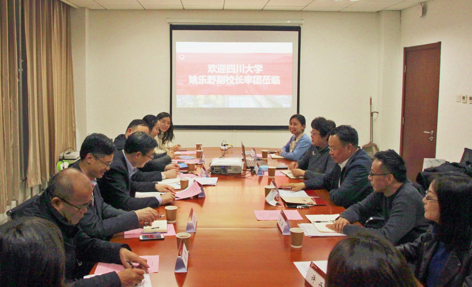 12月3日下午,四川大学副校长姚乐野一行来我校调研国际化办学情况,调研交流会在学院路校区综合科研楼召开。我校副校长时建中出席会议,会议由国际合作与交流处处长、国际教育学院院长许兰主持。