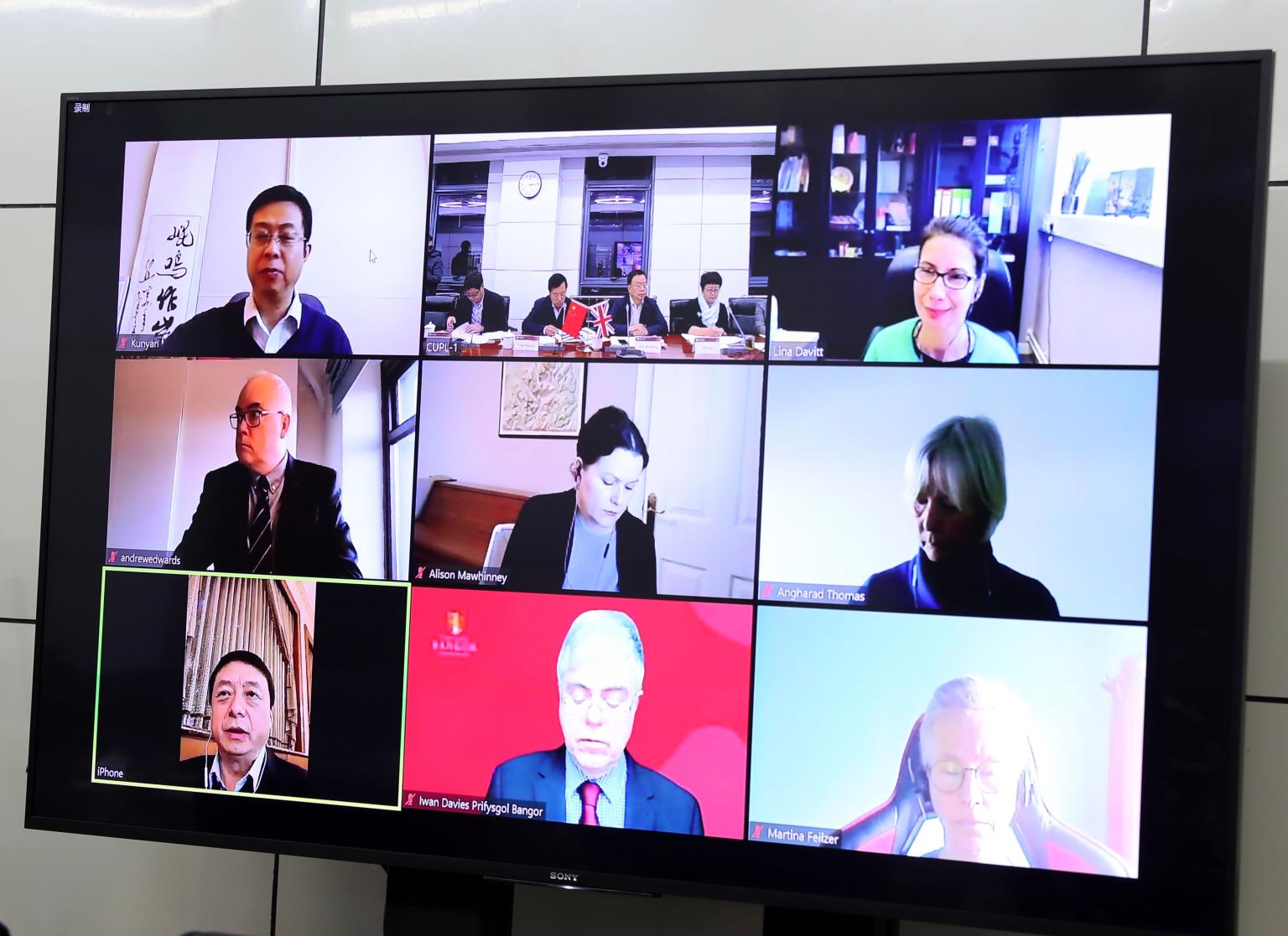 (我校共建英国班戈大学孔子学院第八届理事会暨两校合作协议线上签署仪式举行 摄影 卢云开)