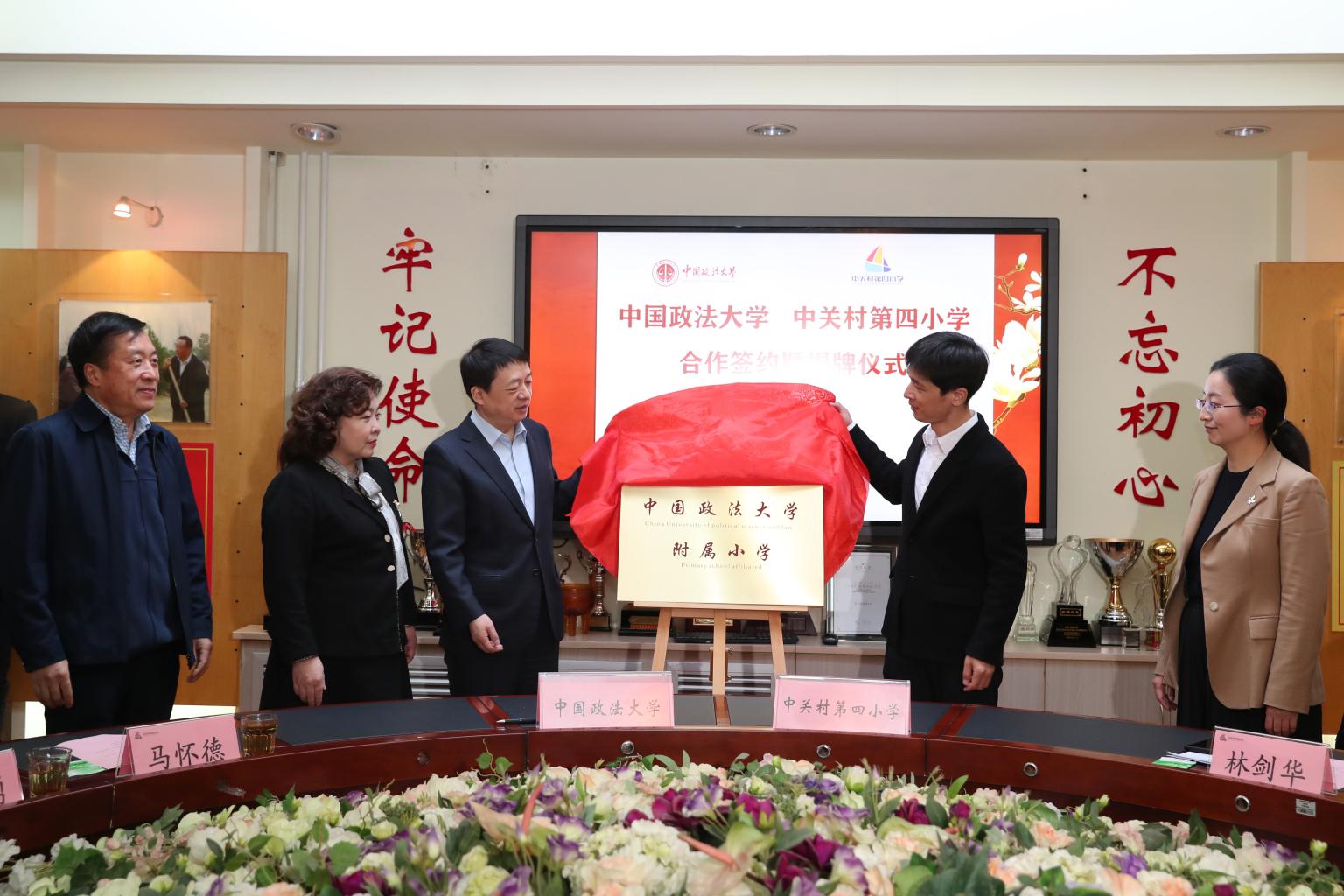 我校和中关村第四小学相关部门负责人参加了签约暨揭牌仪式。