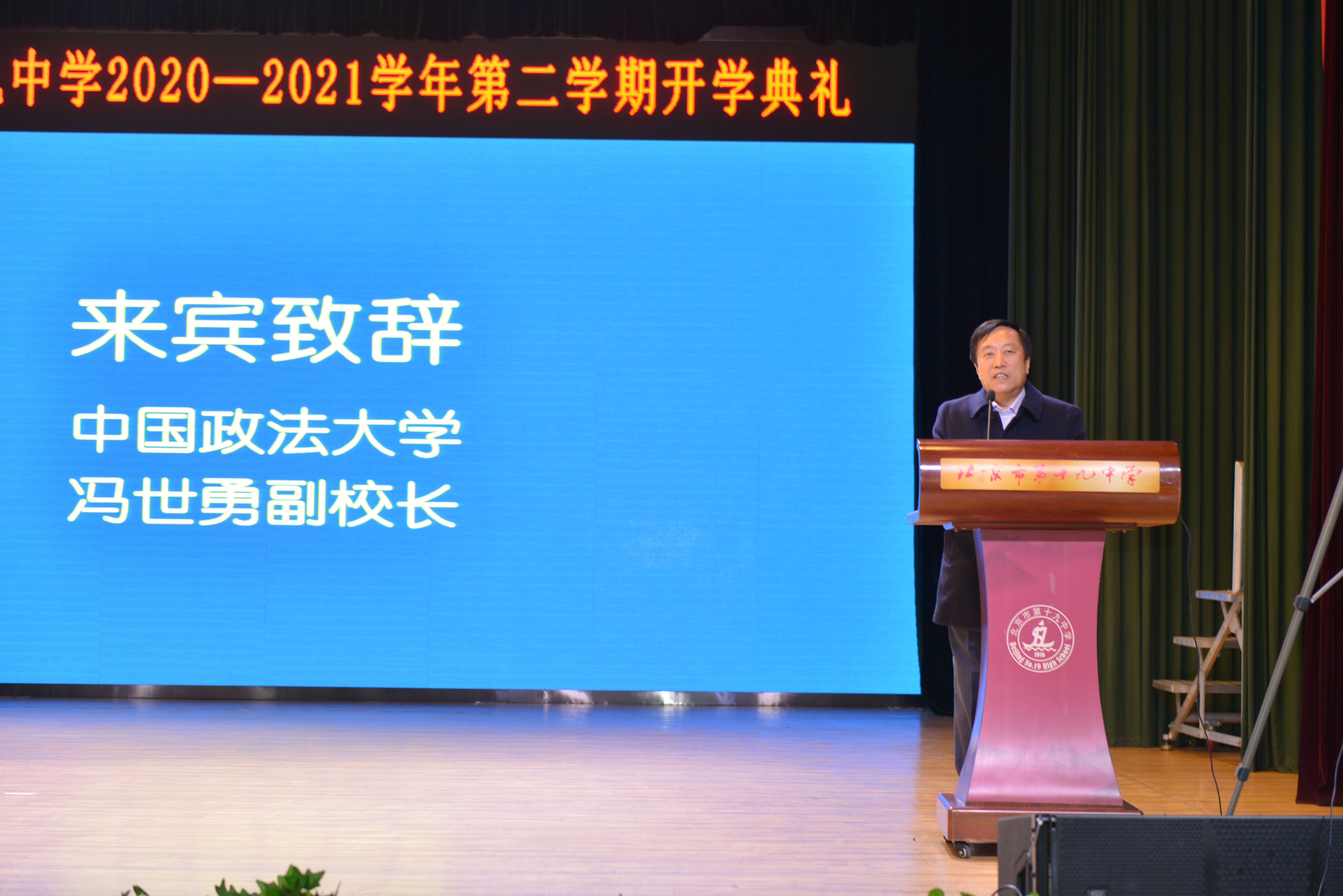 3月1日上午,法大附属实验学校北京市第十九中学举行2020-2021学年第二学期开学典礼。十九中2300多名中外学生和近300名教职工参加了开学典礼。我校副校长冯世勇出席典礼并致辞。