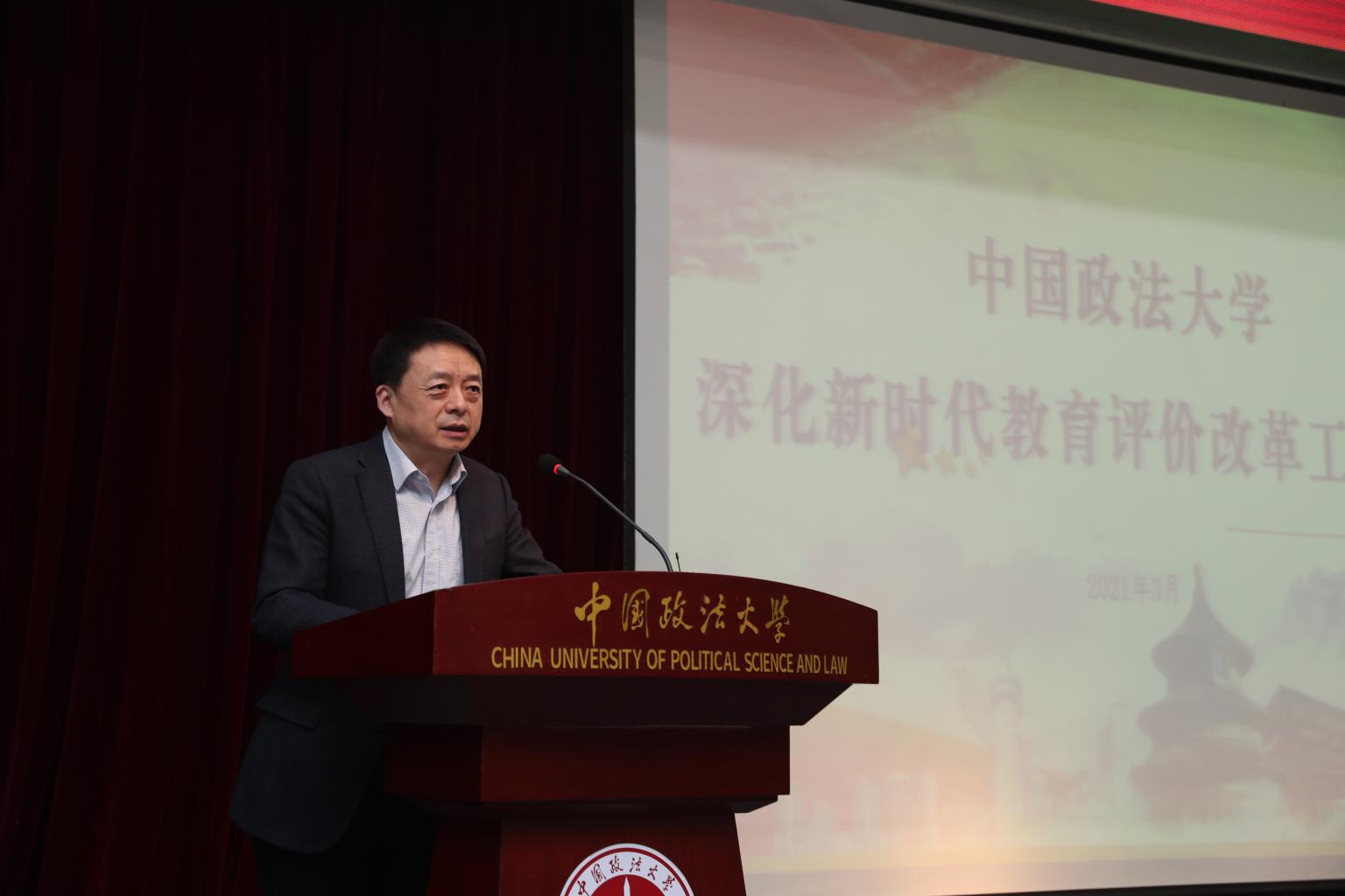 马怀德强调,贯彻落实习近平总书记关于教育评价改革的讲话精神和《深化新时代教育评价改革总体方案》是当前学校工作的重要任务,要深刻认识教育评价改革的重大意义,准确把握“为什么改”“改什么”“怎么改”,科学建立支撑立德树人的教育评价体系,扭转不科学的评价导向,坚决克服“五唯”顽瘴痼疾,严格对标对表进行全面改革,以适应新时代教育事业发展和学校建设发展的需要。在此基础上,他对学校评价、人才培养、学科评价、教师评价、科研评价和学生评价等六个方面,提出了学校教育评价改革的主要任务和要求。他强调,教育评价改革是教育综合改革的龙头,是世界性、历史性、实践性难题,学校要打好攻坚战,落实改革责任,营造改革氛围,加强专业化建设,创造法大经验,为国家深化新时代教育评价改革贡献法大智慧。