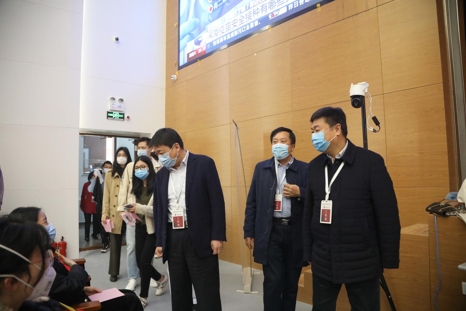 (校领导问候疫苗接种师生 摄影 尹建峰)