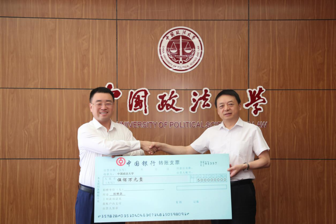 在与会人员的共同见证下,冯世勇与王军伟签署并交换了捐赠协议。马怀德接受捐赠,此次河北金都集团共向我校捐赠500万元人民币用于支持学校建设和发展。国内合作处处长刘建、开放教育管理办公室副主任郑大好参加仪式。