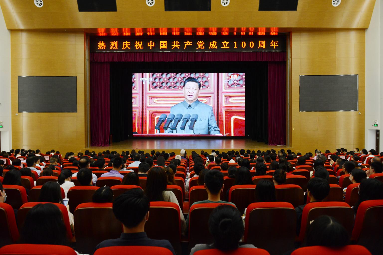 上午8时,我校师生在两校区礼堂集中收看了庆祝中国共产党成立100周年大会,各院级党委也通过各种形式组织党员干部收听收看了大会。