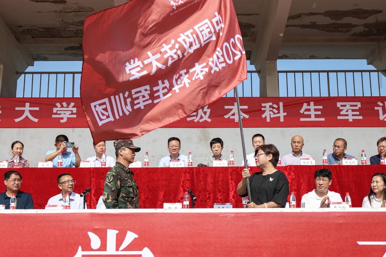 仪式上,副校长李秀云为军训团授团旗,学生工作部长兼武装部部长、军训团政委王洪松宣读军训团成员名单。