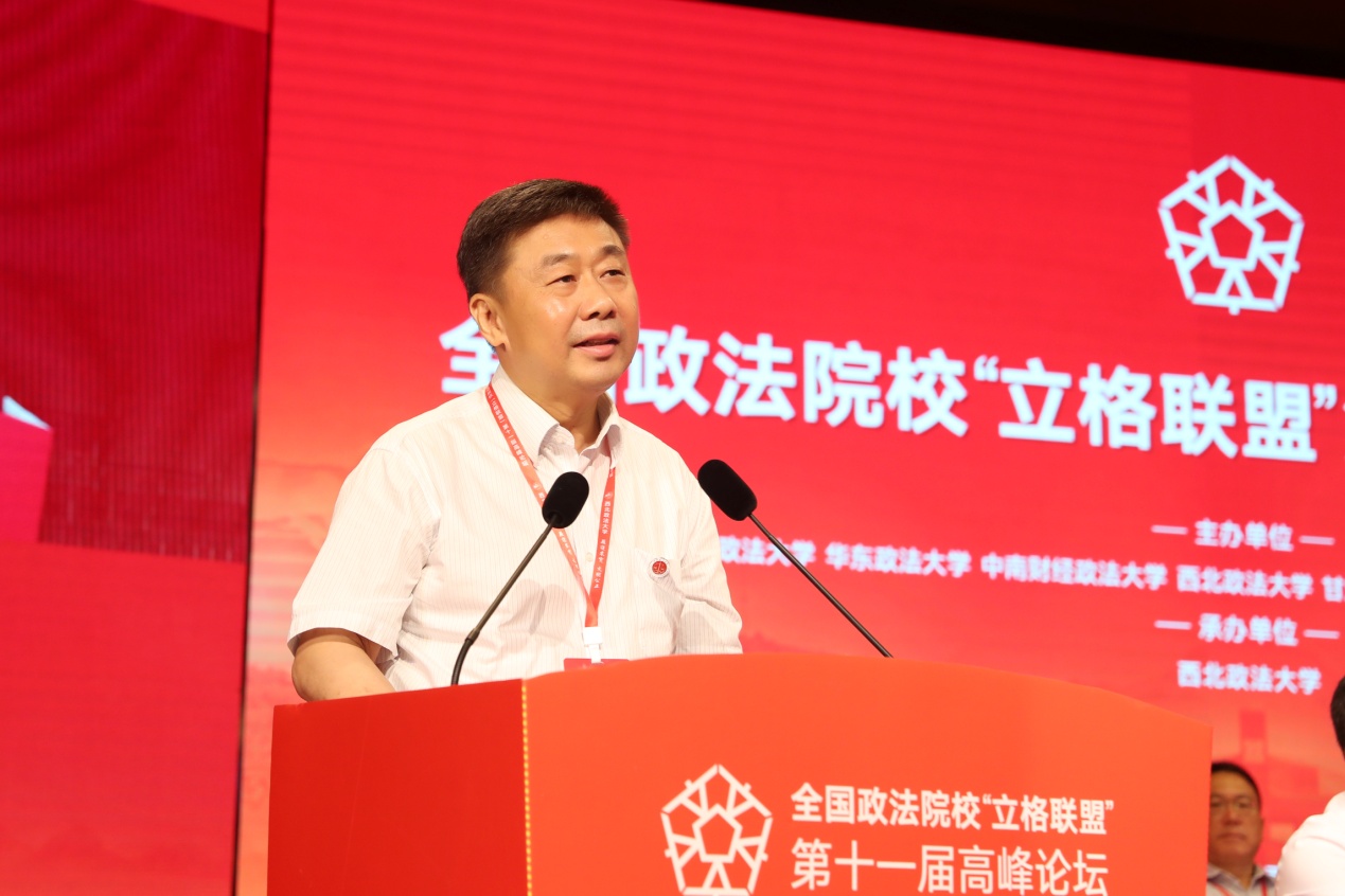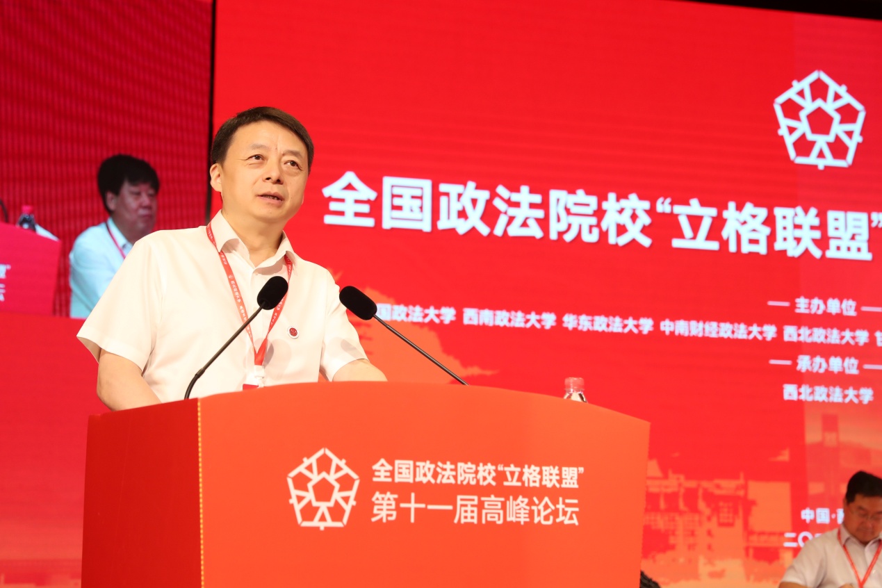 7月16日,全国政法院校“立格联盟”第十一届高峰论坛在西安召开。本届论坛的主题是“深入学习贯彻习近平总书记‘七一’重要讲话,以习近平法治思想为引领,服务构建新发展格局,推动政法院校改革发展,提高法治人才培养质量”。本届论坛由西北政法大学主办,“立格联盟”9所成员单位的校领导、部门负责人及专家学者参加会议。我校党委书记胡明,校长马怀德,副校长冯世勇、时建中、常保国及相关部处负责人出席会议。
