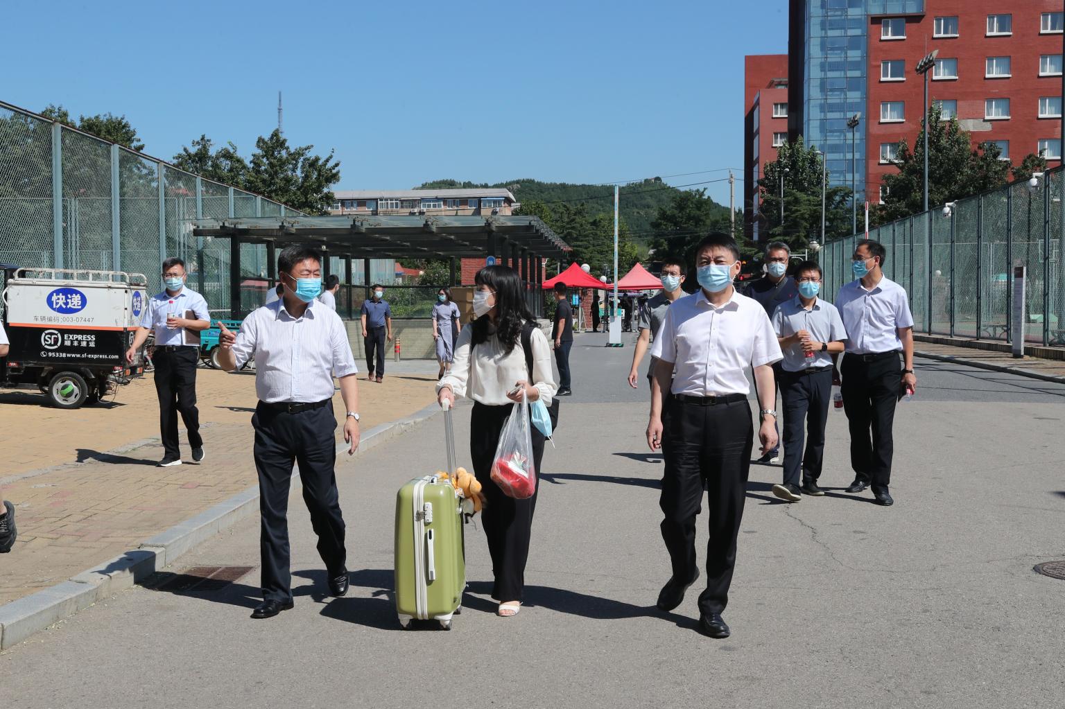 检查中,校领导与返校迎新志愿者亲切交谈,叮嘱大家在做好返校工作的同时注意个人防护,严格执行防疫规定,做好示范。