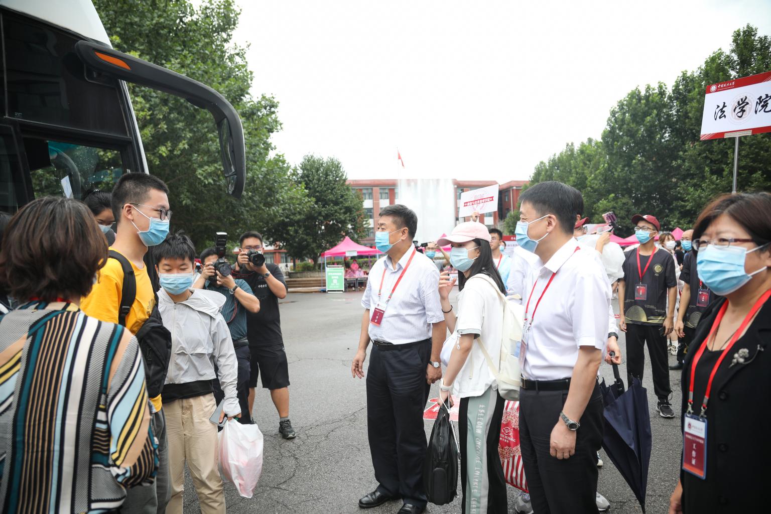 上午10时,校党委书记胡明、校长马怀德、副校长李秀云及相关部门负责人在昌平校区本科生报到现场检查迎新工作。校领导一同迎接了第一辆从北京西站返回的接站班车,向同学们送上亲切的问候并表示热烈的欢迎。在南门入口处,校领导一行询问保卫处负责人新生报道期间疫情防控的相关情况,并要求严格落实各项防疫措施,确保校园安全。在检查各学院的迎新工作情况时,校领导听取学院负责人与学生志愿者对迎新工作的介绍,提出相关工作建议,并对现场工作人员及志愿者致以慰问。