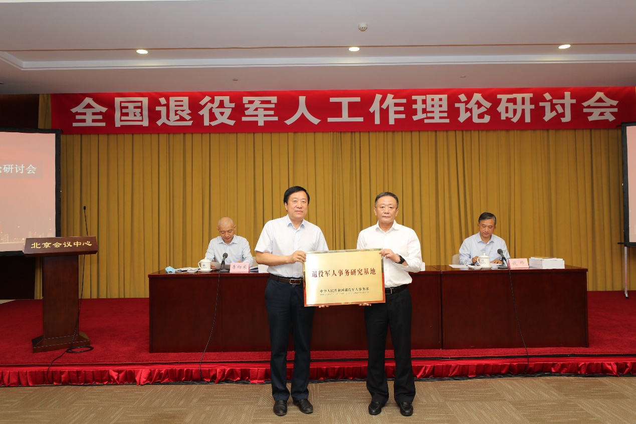 退役军人事务部党组书记、部长孙绍骋出席会议,并向我校授予了“退役军人事务研究基地”牌匾。冯世勇副校长代表我校接受了牌匾。
