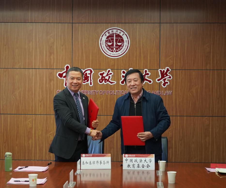 在与会人员的见证下,沈志君与冯世勇签署并交换了捐赠协议,冯世勇向沈志君颁发捐赠证书。此次泰和泰律师事务所向法大捐赠人民币一百万元,设立泰和泰奖助学金,用于支持法律硕士学院的建设与发展。