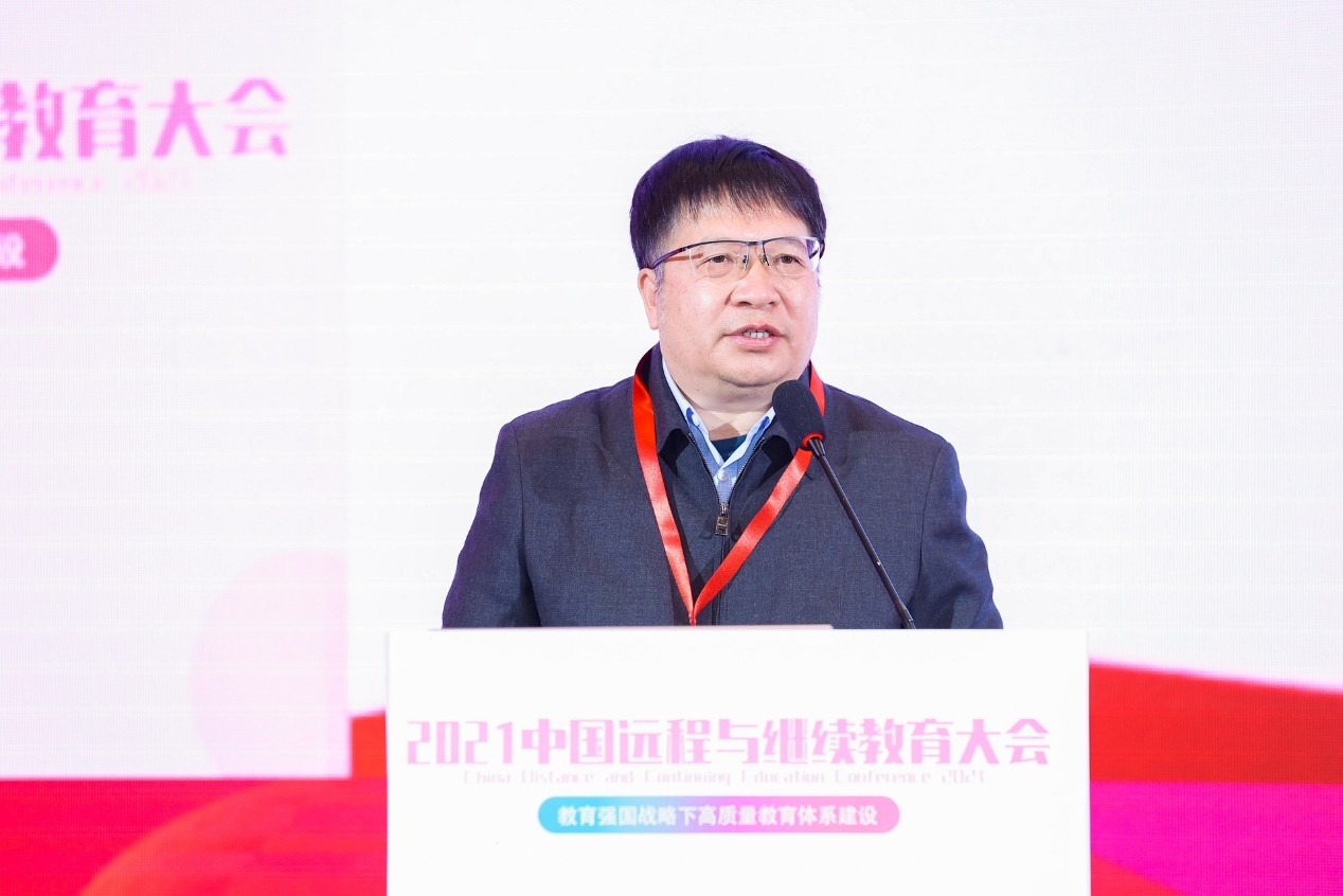 (常保国在2021中国远程与继续教育大会做主题演讲 摄影 中教全媒体)