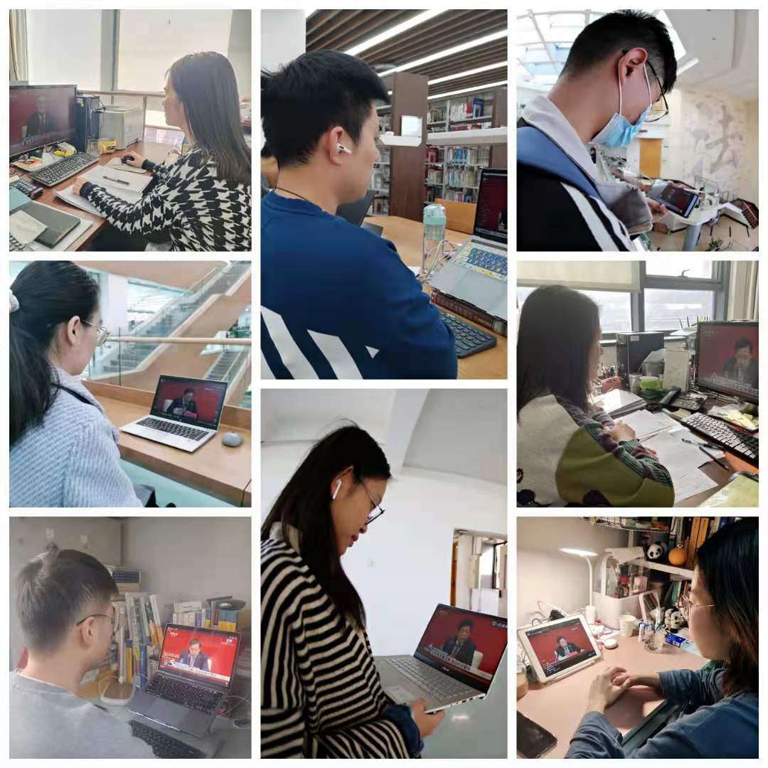 (法大学生用各种方式学习观看党的十九届六中全会新闻发布会直播 摄影 卢云开)