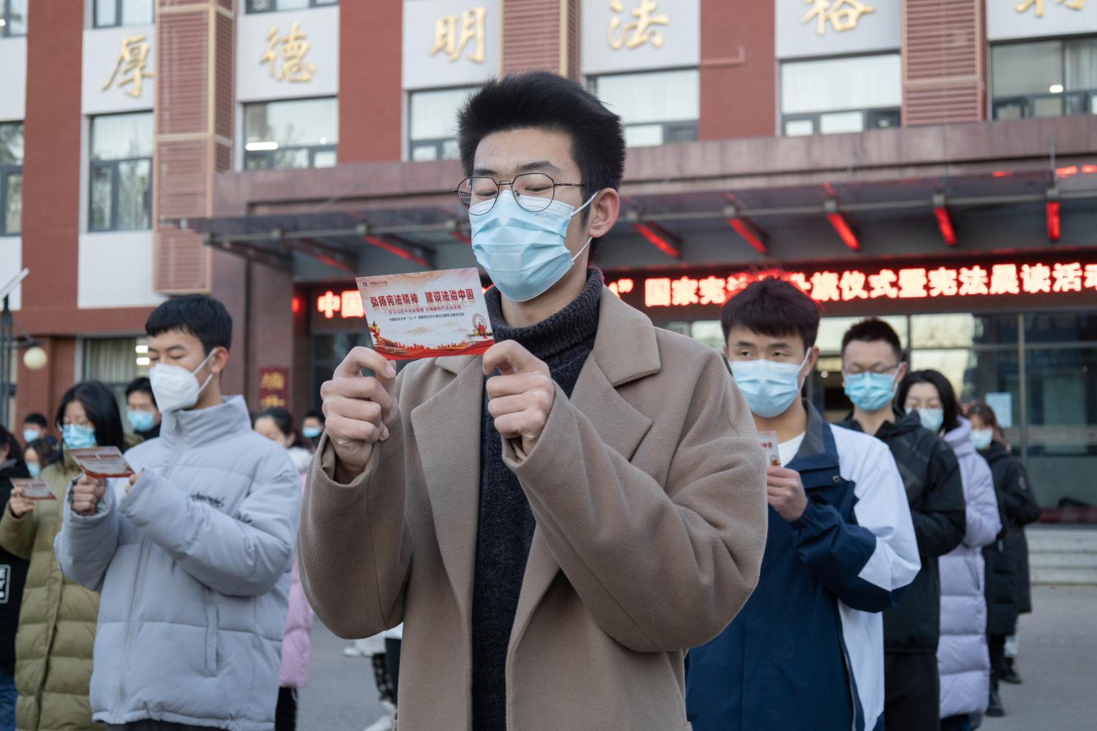 (特约通讯员 赵春铭)弘扬宪法精神,维护宪法权威。2021年12月3日清晨,我校60余名同学齐聚在端升楼前广场,参加由校团委、学生处主办,法学院团委承办的“12·4”国家宪法日晨读活动。