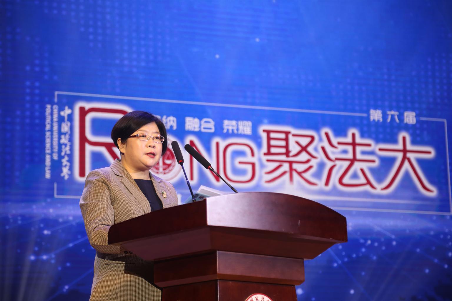李秀云在致辞中讲述了潘汉典、江兴国和法大园丁三个故事,具体阐释了法大精神的内涵。她表示,文化根基对学校的精神起着重要的塑造作用,法大精神的传承需要更多对法大文化建设做出贡献的个人和集体,以及讲好法大故事的人。她向今晚获奖的集体和个人表示感谢并祝贺,在七十周年校庆来临之际,希望大家为继续传承和发扬法大精神、建设校园文化贡献智慧,共同书写无愧历史的新辉煌。