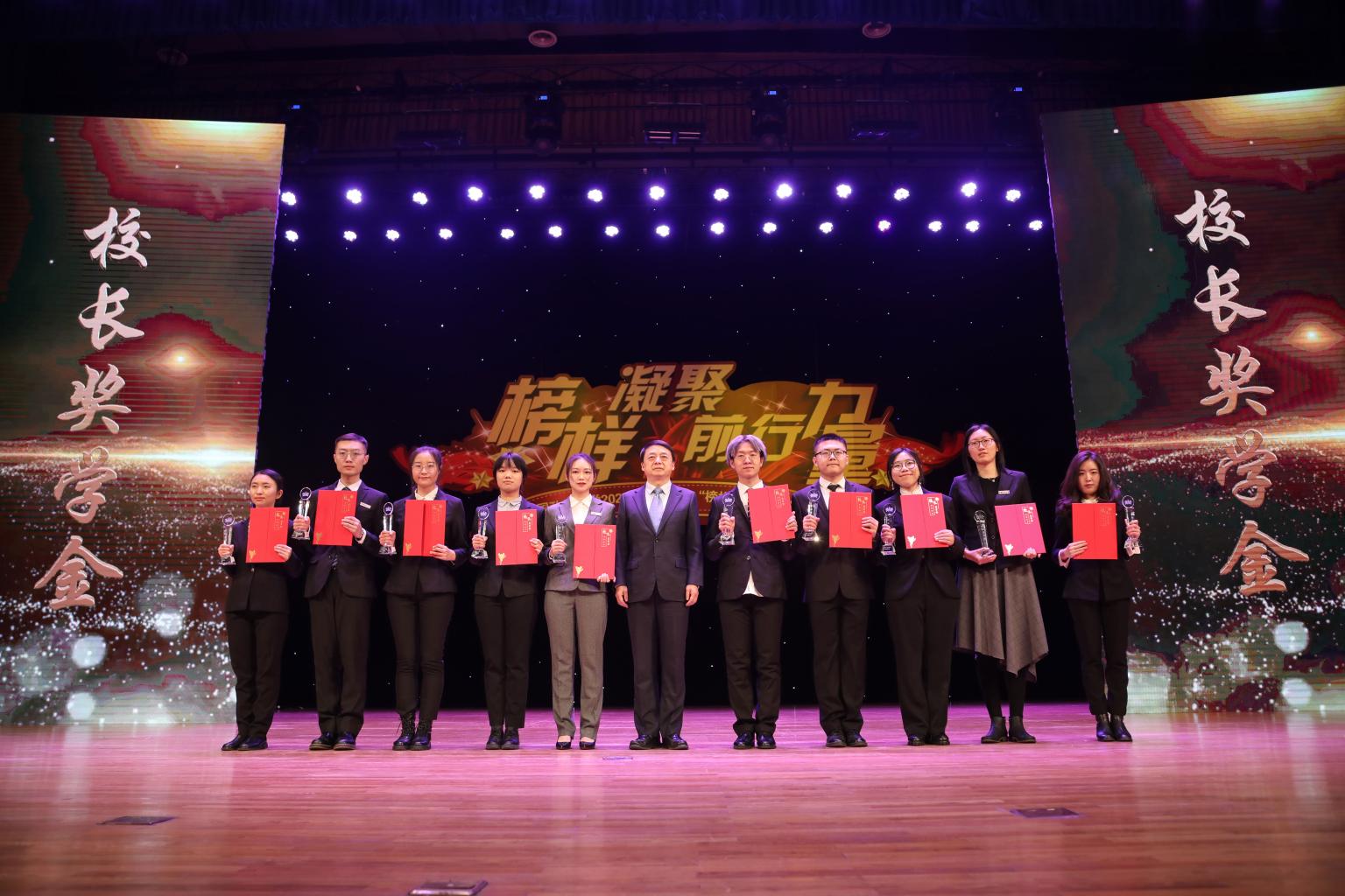 随后,典礼进入高潮,马怀德校长为10位校长奖学金获得者颁奖并合影留念。