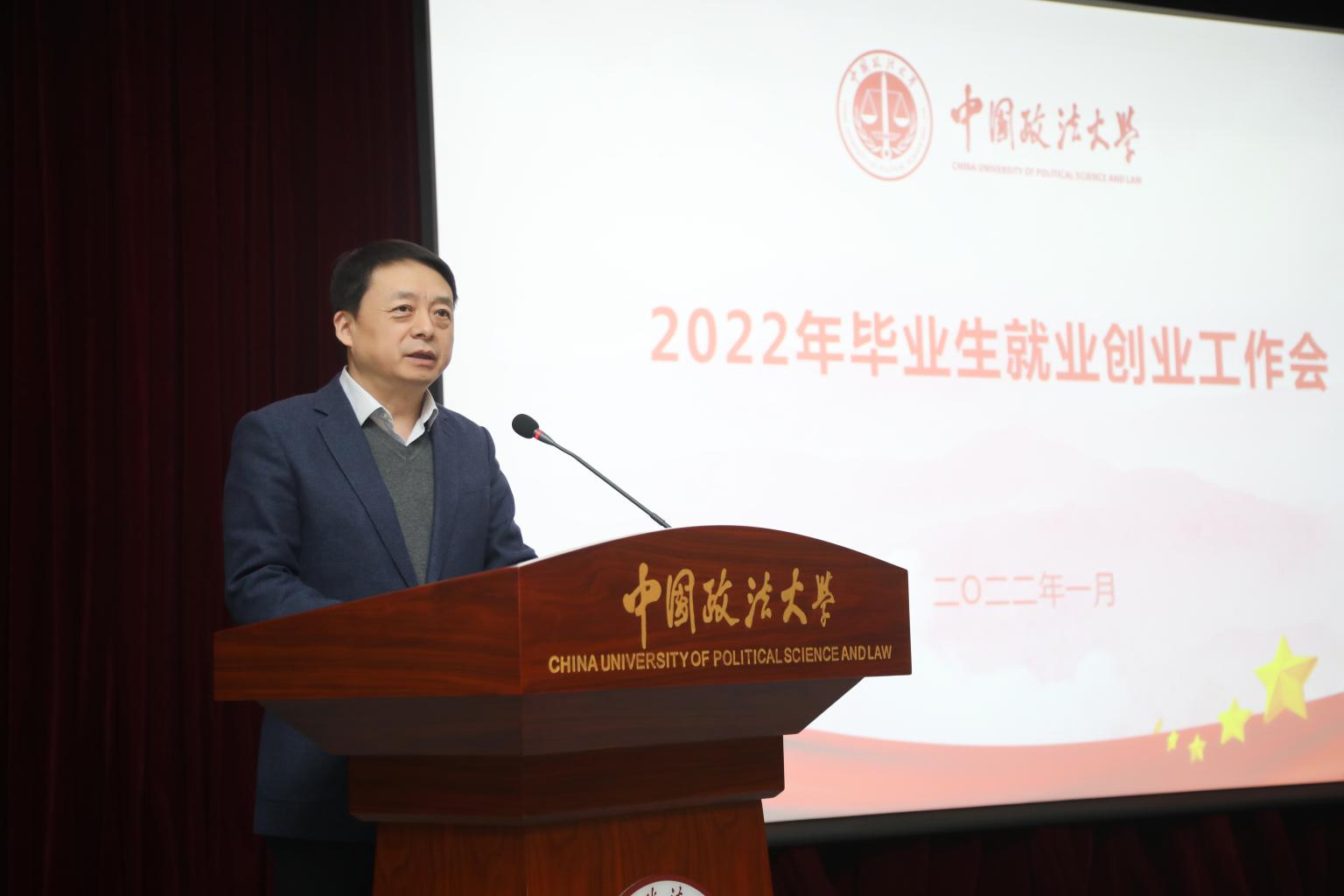 马怀德回顾了过去一年就业创业工作。他指出,学校坚持习近平新时代中国特色社会主义思想和党的教育方针,认真贯彻落实教育部和北京市的决策部署,克服疫情影响,毕业生就业创业工作平稳有序,达到了预期工作目标。他结合当前全国和我校的毕业生就业形势,对学校2022年毕业生就业创业工作进行了部署。一是加强形势预判,做好宣传引导工作。要将就业工作与思想政治教育紧密结合,加强毕业生就业观、择业观、成才观教育,引导毕业生合理规划、理性就业。二是大力拓宽渠道,保证岗位供给。要强化全员抓就业工作理念,充分发挥就业工作队伍和党政干部、专业教师、校友等各方面积极作用,千方百计拓展岗位信息来源。三是加强引导,健全基层就业支持体系。要完善大学生创新创业服务体系,切实支持大学生创新创业。四是进一步完善就业帮扶机制。要实施一生一策动态管理,帮助有就业意愿毕业生提高综合素质和就业能力。五是完善就业统计与反馈机制。要及时统计、通报学院就业进展情况,确保数据真实准确,不断提高人才培养和社会需求的契合度。六是加强队伍建设和组织保障。要继续落实就业工作“一把手”工程,加强就业工作队伍职业化、专业化建设。