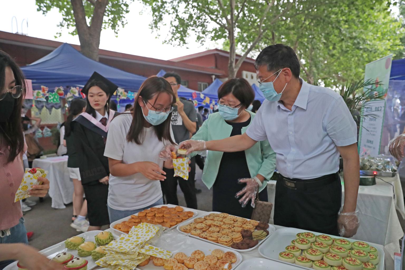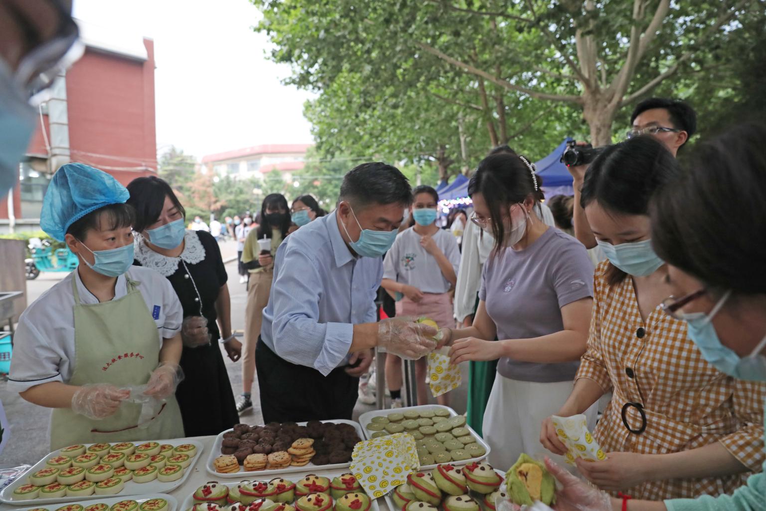 (校领导为同学们送上安康饼 摄影 卢云开)