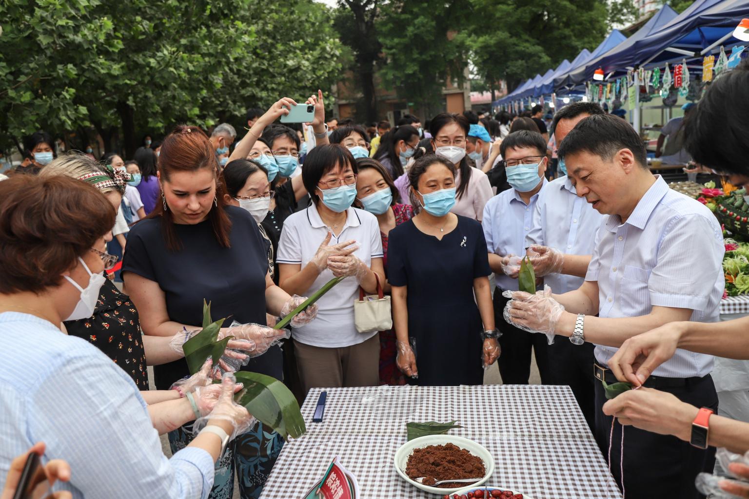 (校领导与同学们一起包粽子 摄影 郭宏政)