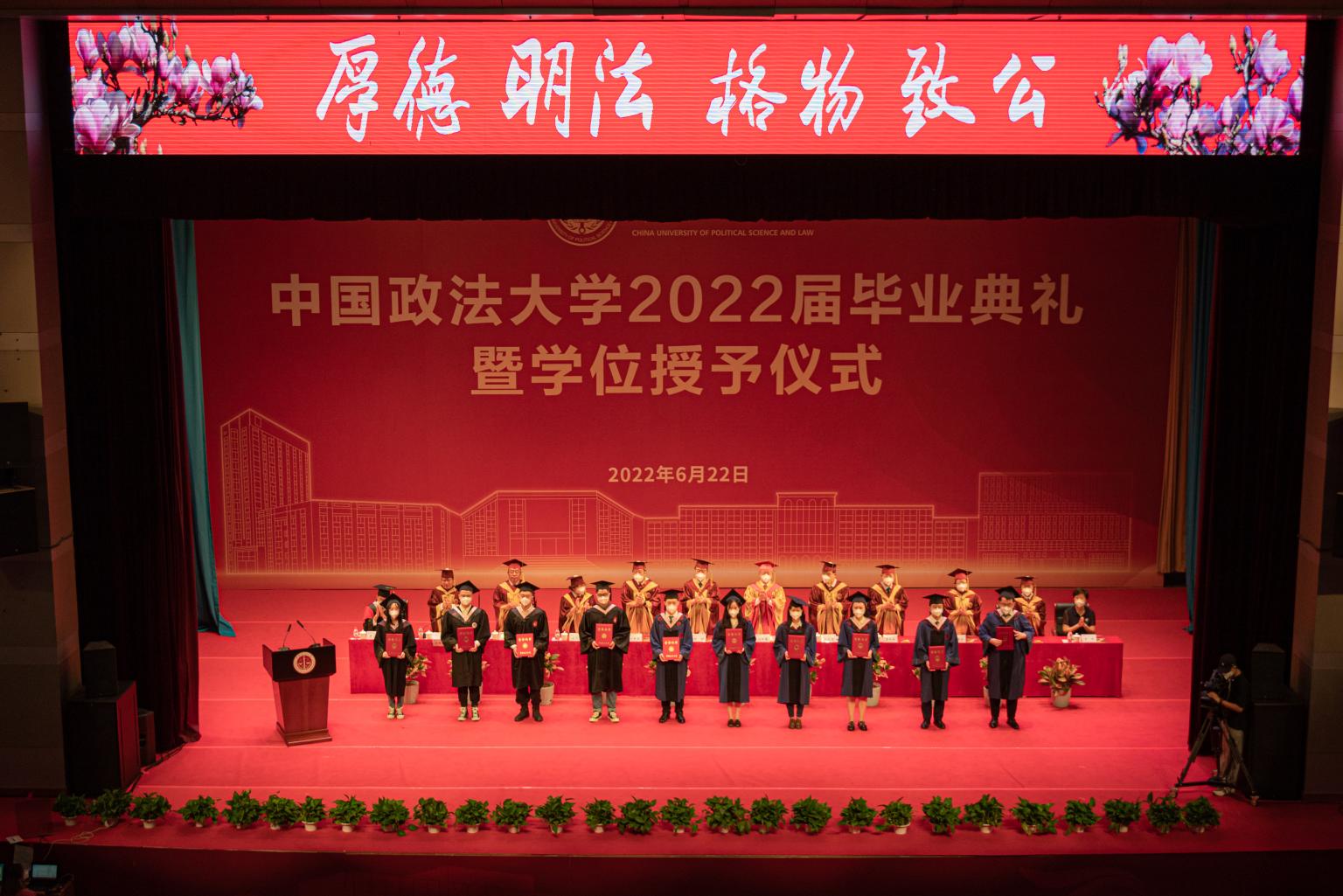 “看我法大学子,明朝国之栋梁”。全体师生共唱校歌《情怀法大》,激昂的歌声传遍礼堂。在经久不绝的掌声中,2022届毕业典礼暨学位授予仪式圆满落幕。
