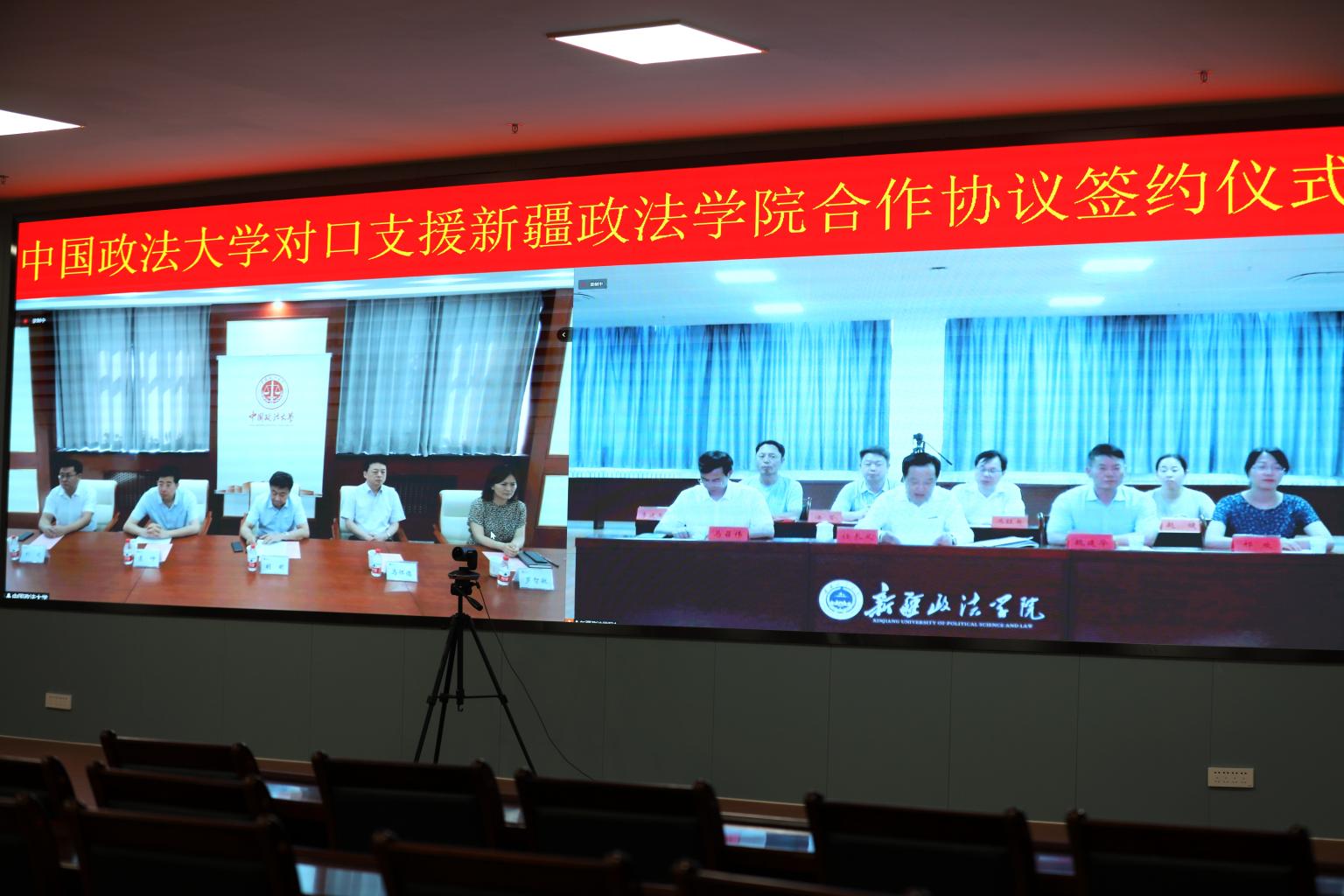 7月18日,我校对口支援新疆政法学院举行合作协议线上签约仪式。我校党委书记胡明、校长马怀德,新疆政法学院党委书记任长义、副院长魏建华、副院长马召伟出席签约仪式。仪式由任长义主持。