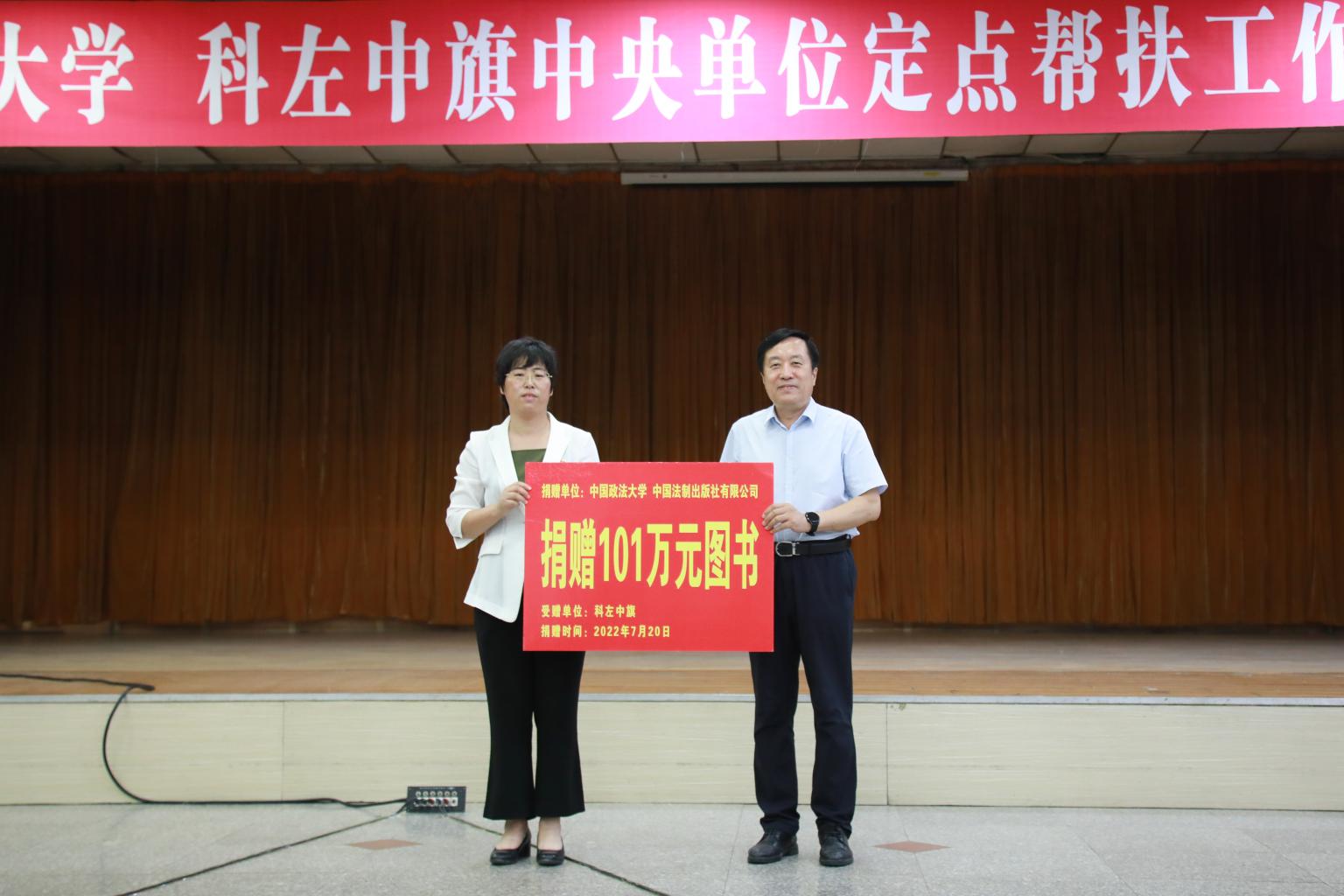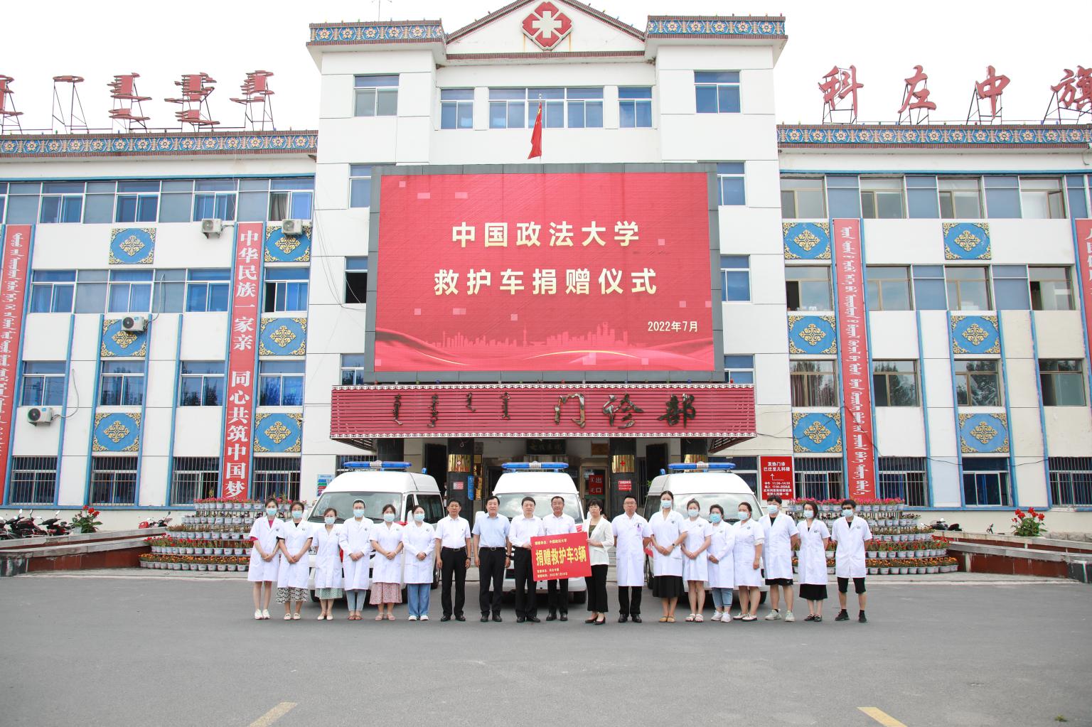 期间,我校与科左中旗还举办了救护车和图书捐赠仪式。马怀德与冯世勇代表学校向科左中旗捐赠救护车;冯世勇代表学校向科左中旗捐赠图书。